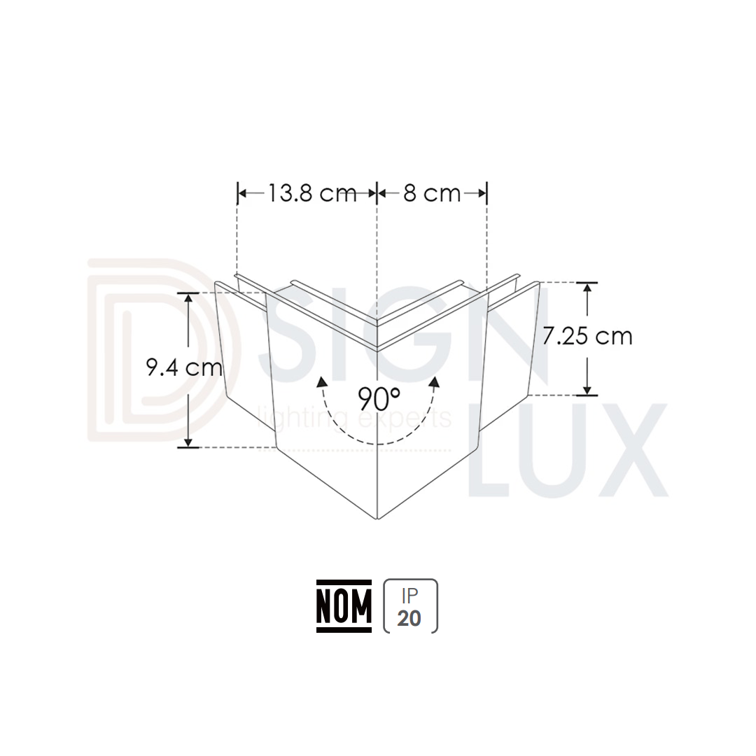 Cople 90° no iluminado para luminario led lineal interconectable 3 Watts Incluye tornillos, IP20