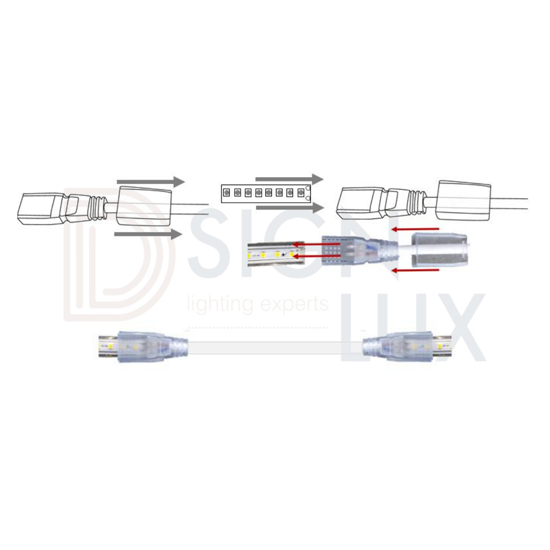 Cople con cable para tira de led NONWIRE™ 2835 o 5050 de 127 V ca, con protección IP20. ACOPLTLC28355050 – ILUMILEDS