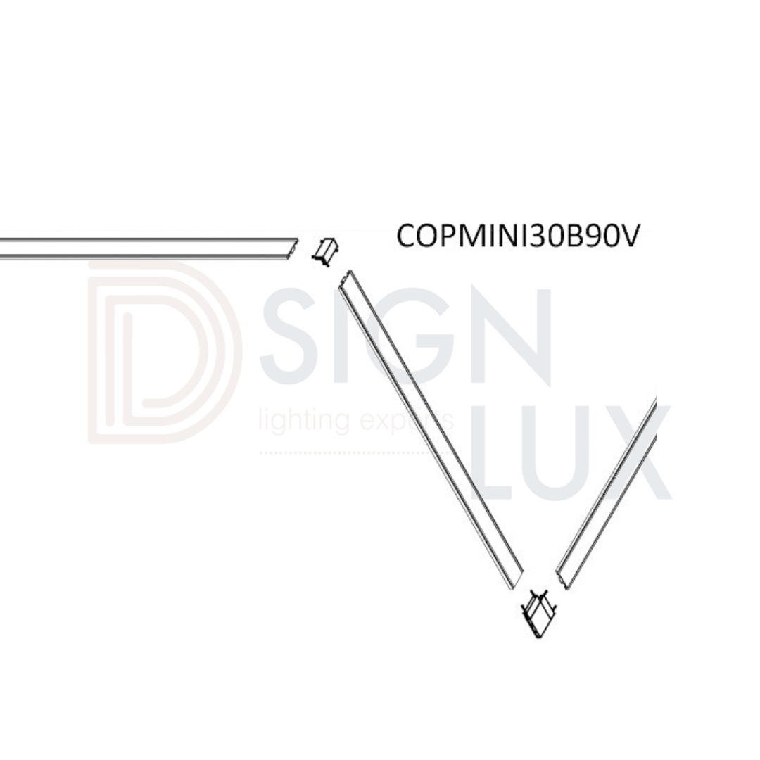 Cople de 90° mecánico y electrificado, para mini riel magnético ILUTMAGMINI30B / ILUTMAGMINI30W, conexión vertical. COPMINI30B90V / COPMINI30W90V – ILUMILEDS