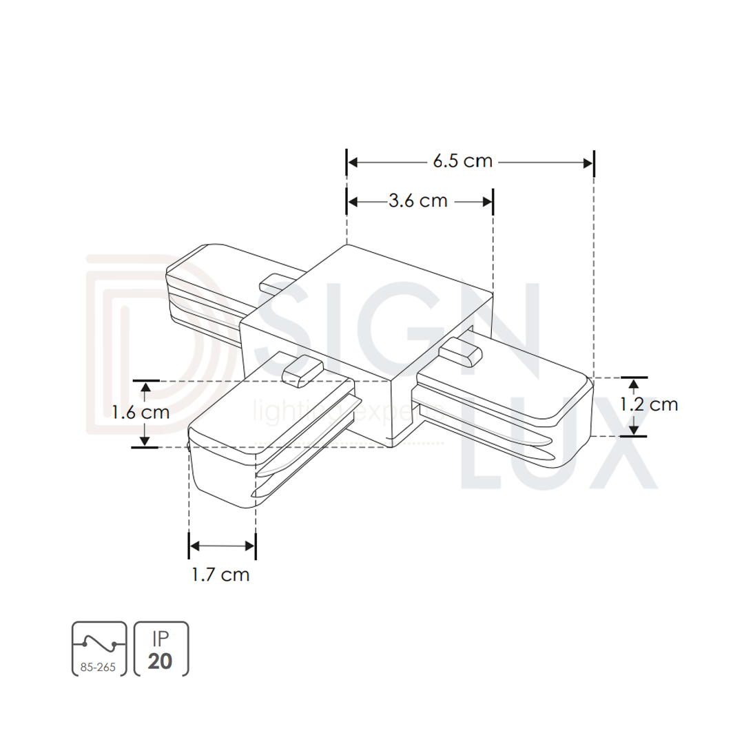 Cople en forma de T para riel electrificado 1 circuito, terminado blanco / negro, 85-265 V ca 20 A máx. ILUCOPLETRIELB – ILUCOPLETRIELW – ILUMILEDS