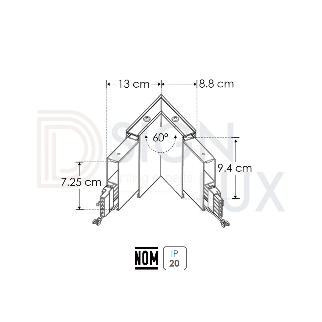 Cople 60º iluminado para luminario led lineal interconectable Incluye tornillos, IP20.