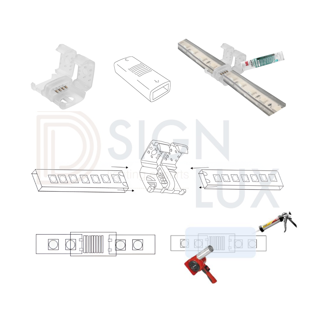 Cople para tira de LED NONWIRE™ 5050 RGB de 127 V ca, de silicón, protección IP20. ACCOPTLRGB – ILUMILEDS