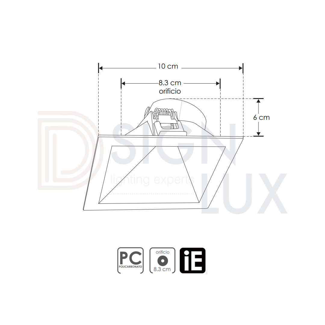 Difusor cuadrado para módulo de LED de 8W, tipo bafle antideslumbrante diagonal, policarbonato acabado blanco. IP54