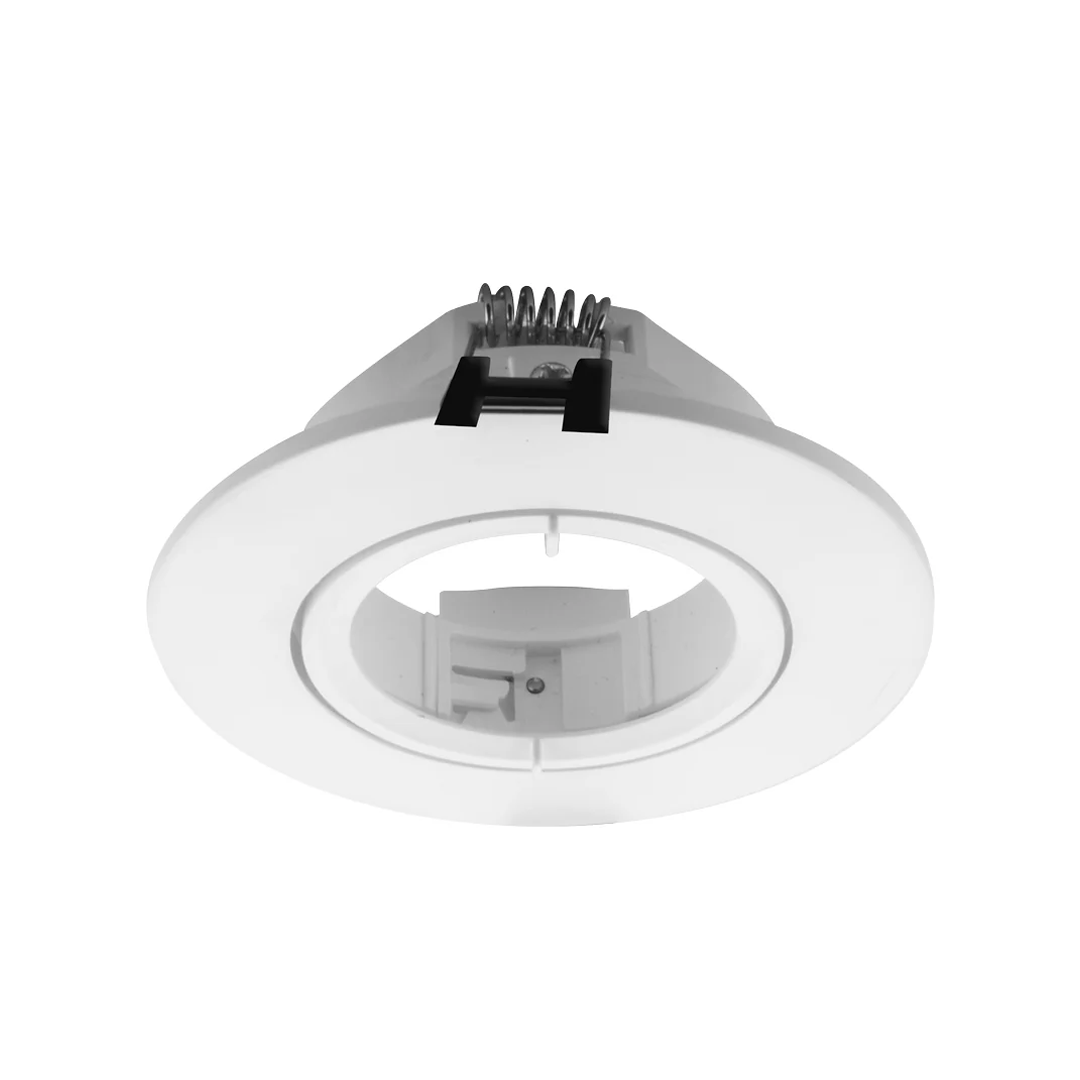 Difusor redondo dirigible de policarbonato negro para foco tipo dicroica MR16, GU10 o módulo de LEDs, incluye conector MR16, IP54.
