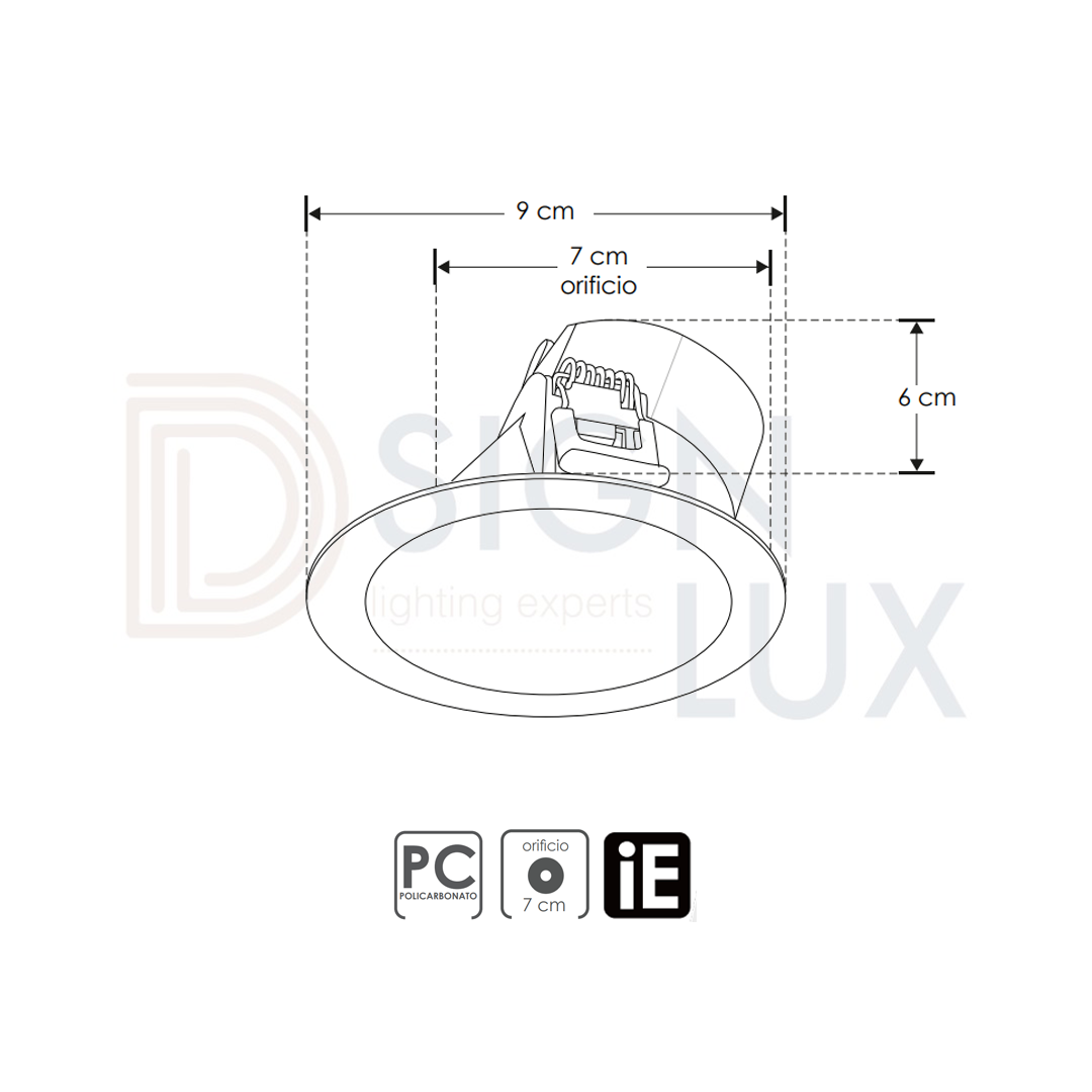 Difusor redondo para módulo de LED de 8W, tipo bafle antideslumbrante diagonal, policarbonato acabado blanco, IP54.