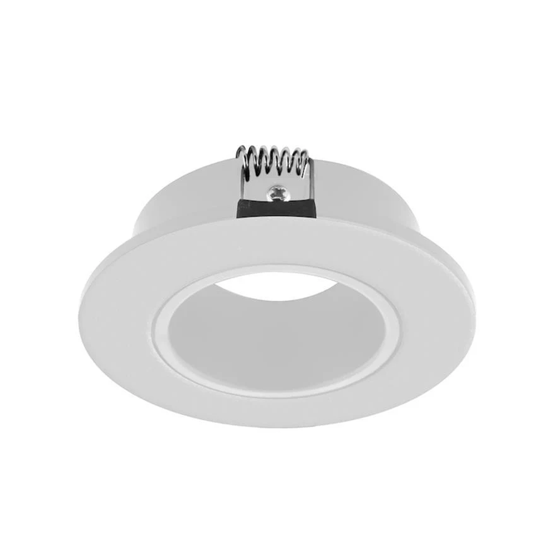 Difusor redondo, semiprofundo dirigible de policarbonato blanco para lámpara tipo dicroica MR16, GU10 o módulo de LEDs, incluye conector MR16, IP54.