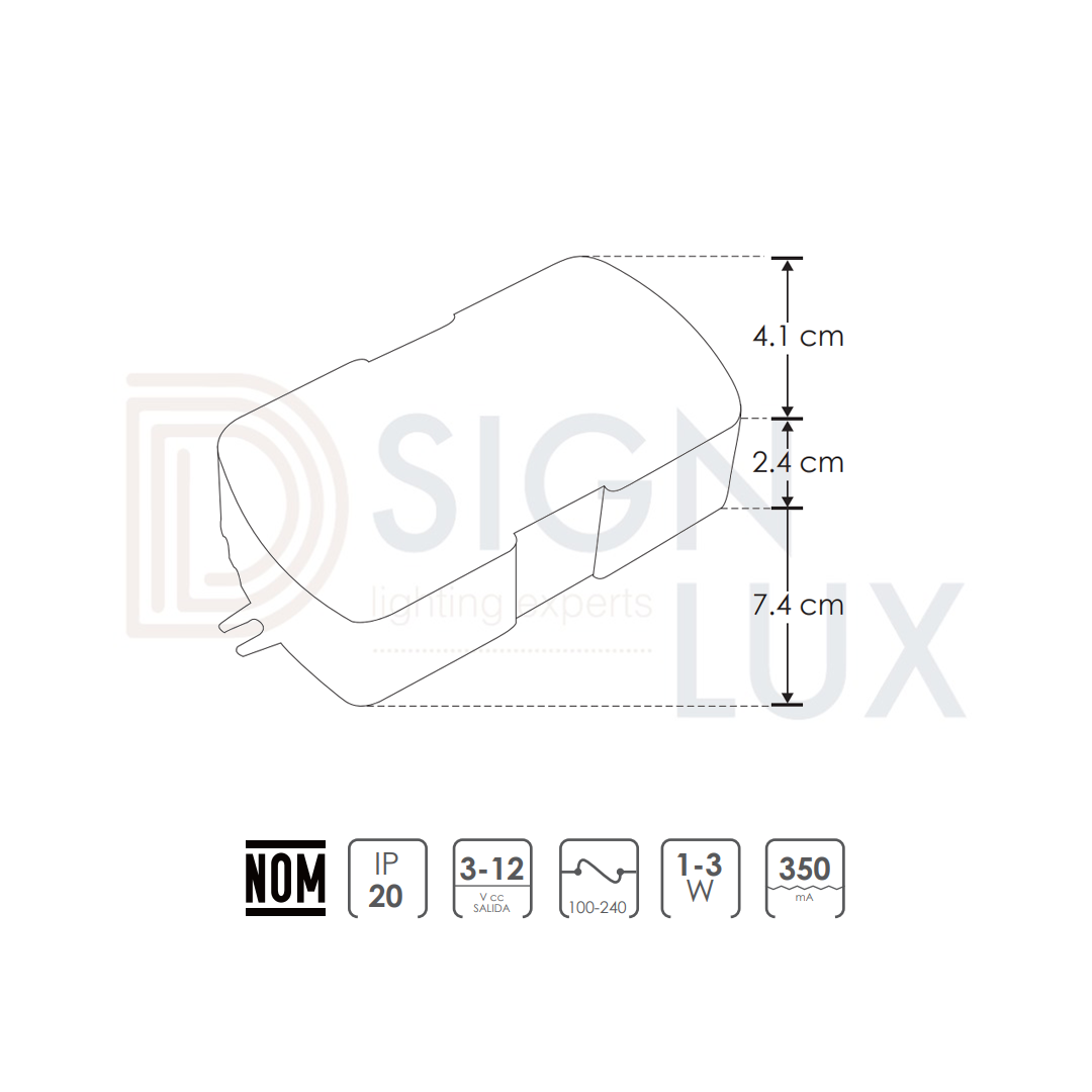 Fuente de alimentación para luminarios de led aterrizado, 1-3 Watts, protección IP20.
