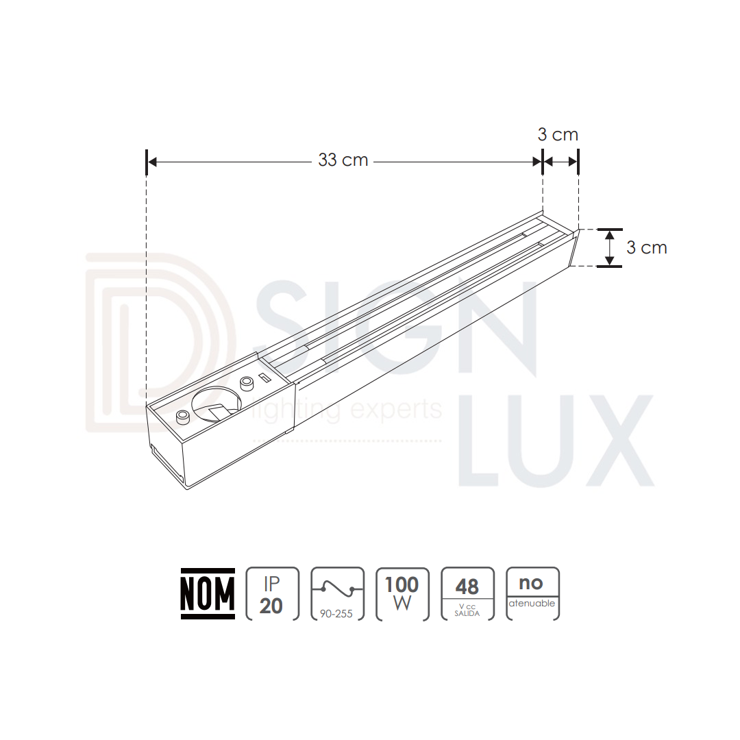 Fuente de alimentación para mini riel magnético, 100 Watts, entrada 90-255 V ca, salida 48 V cc, protección IP20, acabado negro/blanco. ILUPSMR48V100WB / ILUPSMR48V100WW – ILUMILEDS