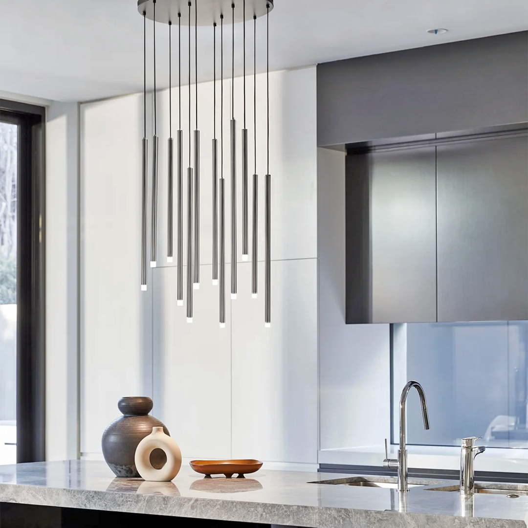Lampara colgante led cascada de cilindros de 13 luces, base G9, 65W, con cable de 3m