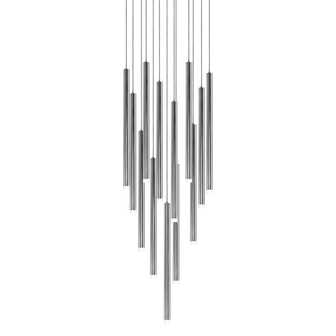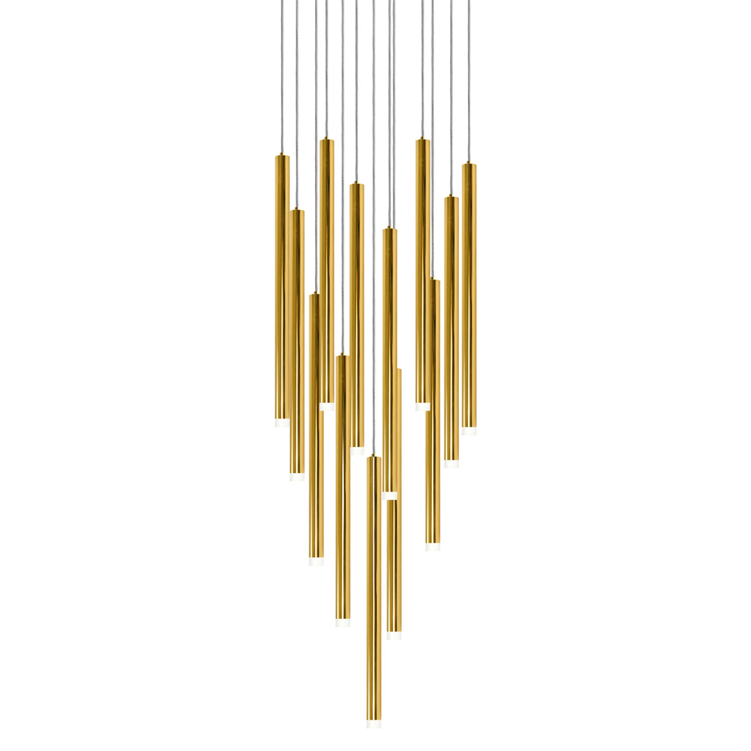 Lampara colgante, de led, en forma cascada de cilindros, 13 luces, acabados oro, cromo y negro cromo, base G9, 90-130V, 65W, ø420*H600mm, altura 3m, MINHA – Q30013-BC / Q30013-CH / Q30013-GD – QUOR