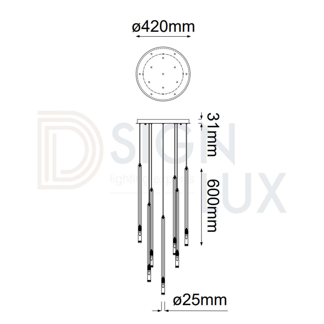 Lampara colgante led cascada de cilindros de 25 luces con cable de 3m