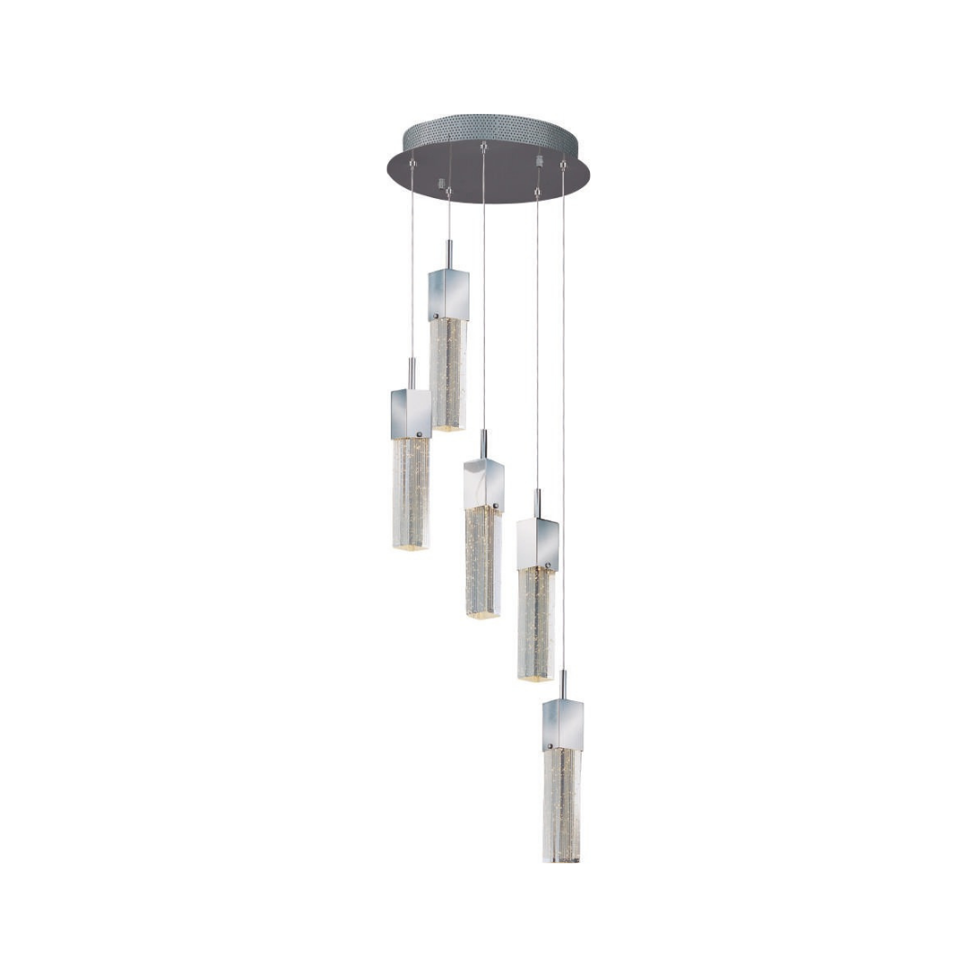 Lámpara led colgante Cromo Pulido y Cristal con Burbujas 5 LEDS