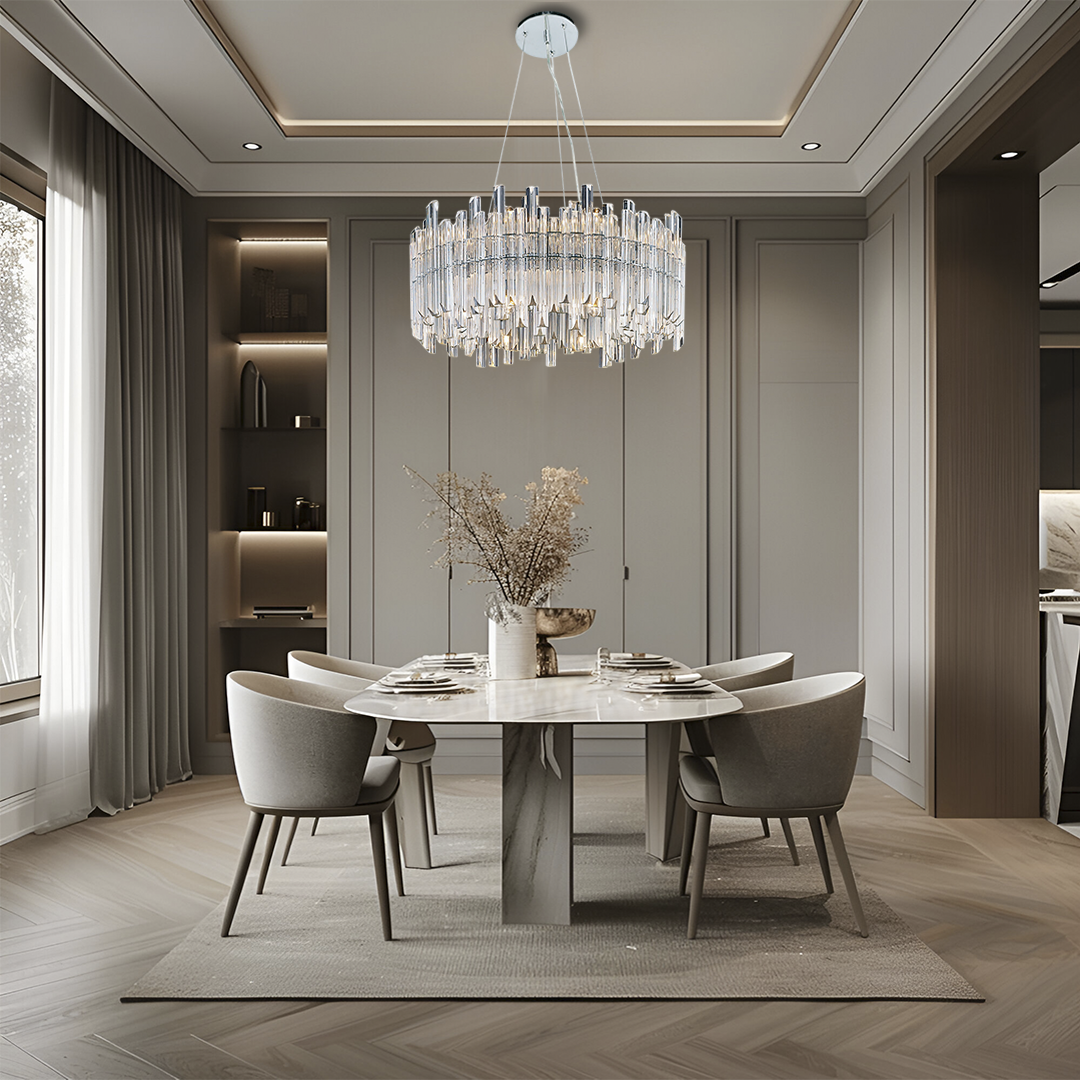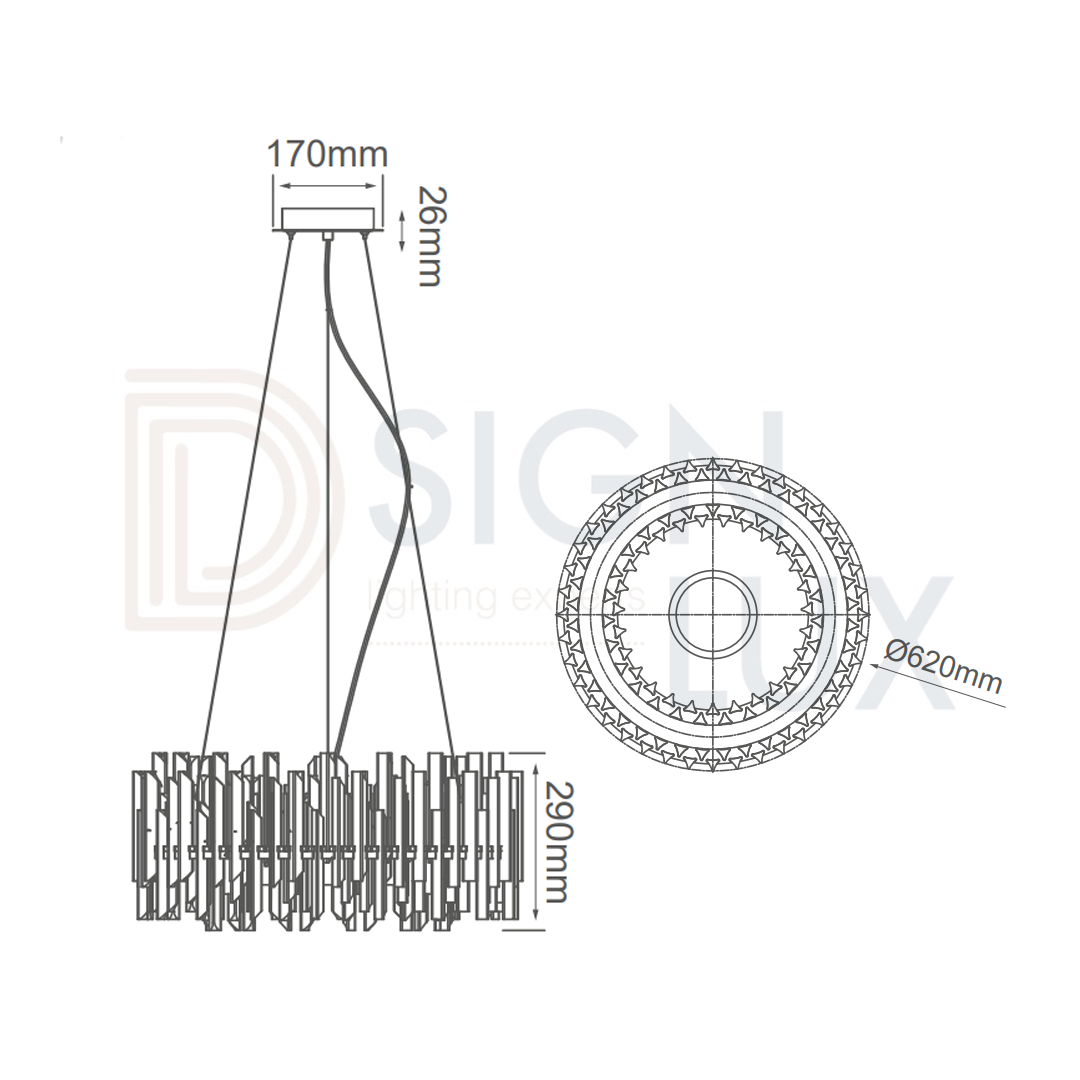 Lampara colgante, de cristal biselado, 16 luces, de metal y cristal, en acabado cromo, G9 (focos no incluidos), 90-130v, Ø620*H290mm, cable de 3m, VENUS – Q23168-CR – QUOR