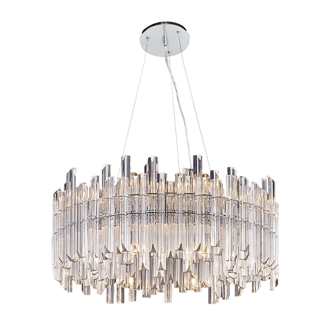 Lámpara colgante con cuerpo de cristal biselado en acabado en cromo con cable de 3m, 12 luces