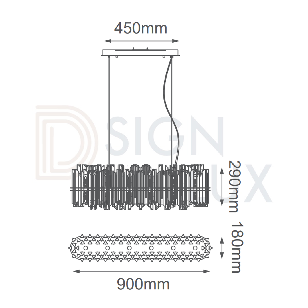 Lampara colgante, de cristal biselado, 12 luces, de metal y cristal, en acabado cromo, G9 (focos no incluidos), 90-130v, L90*W29*H10cm, cable de 3m, VENUS – Q23167-CR – QUOR