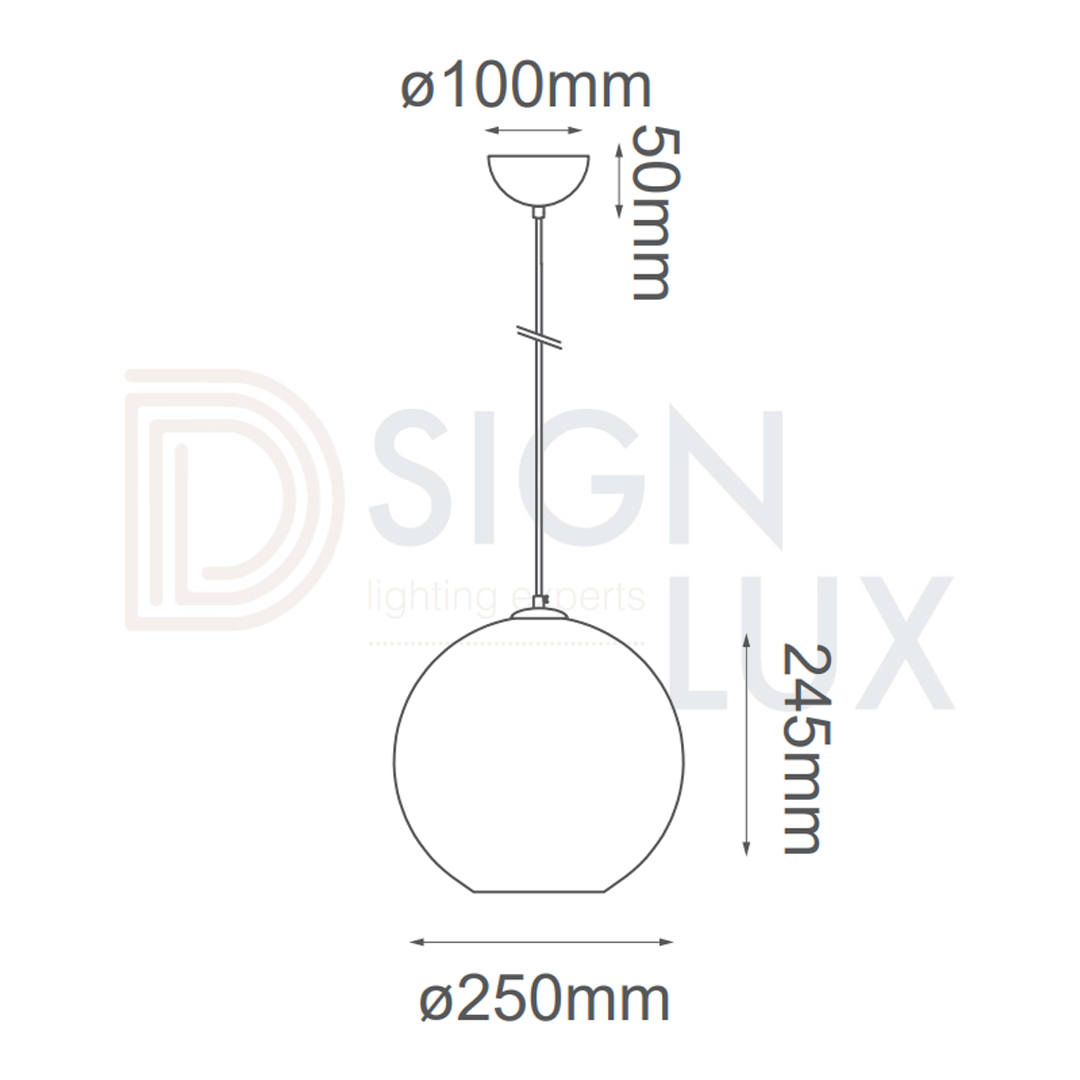 Lámpara colgante esferica con cuerpo de cristal de 25cm con cable de 3m