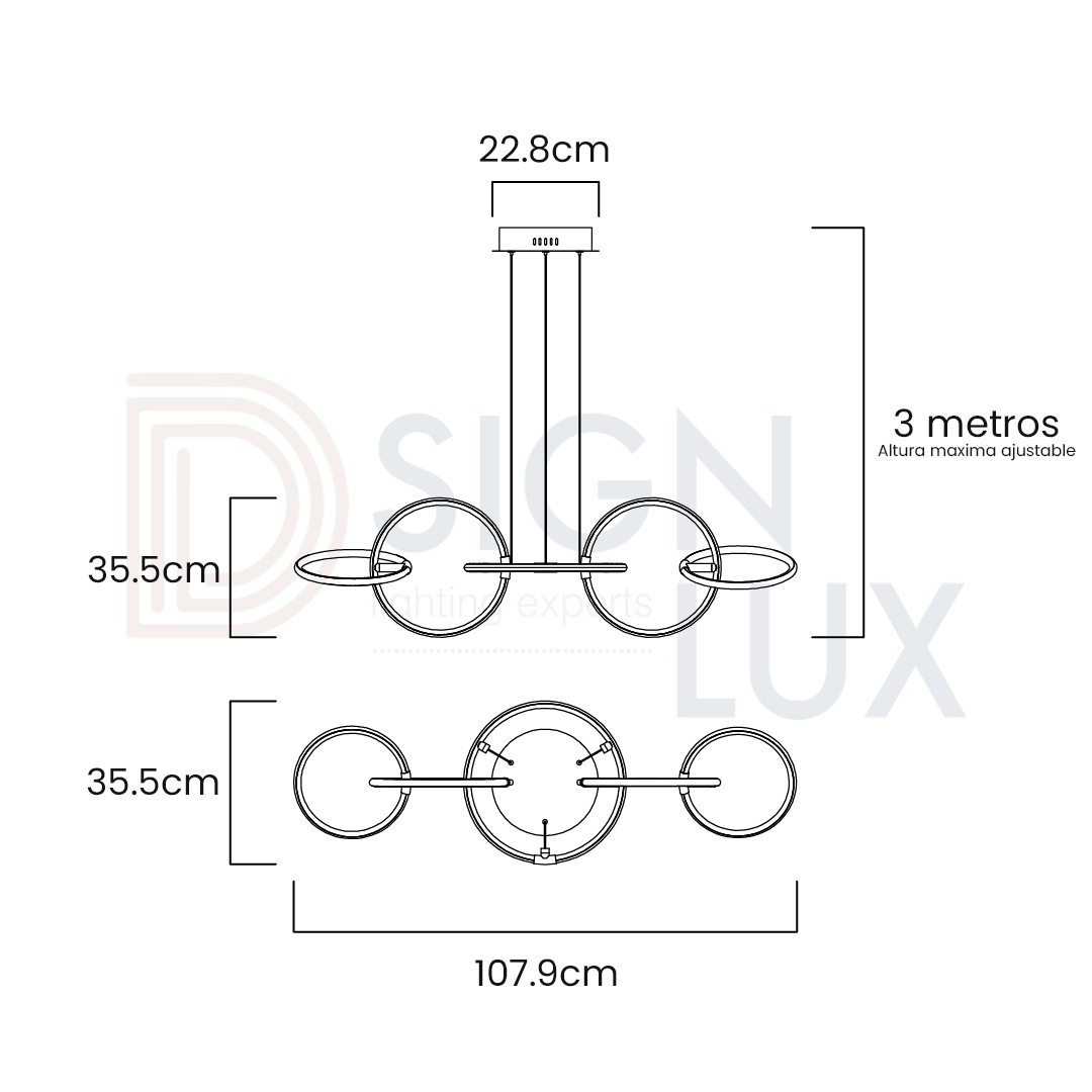 Lampara de 5 aros LED, ideal para el hogar, comercio y oficina.