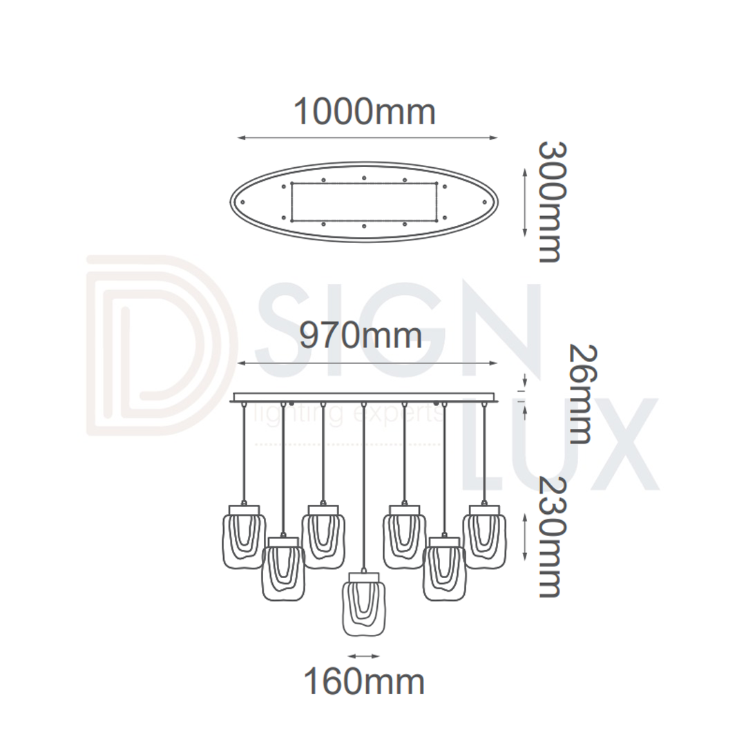 Lámpara colgante, led integrado, 12 luces cristal, en acabado ambar, 48W, 3840lm, 90-130V, L1000*W300*H230mm, cable de 3m, VIVA – Q36212-BG – QUOR