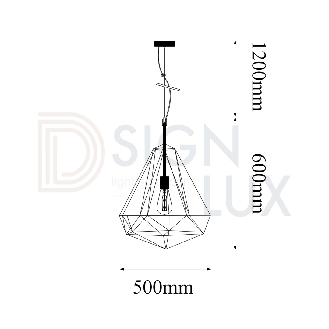Lámpara colgante decorativa en forma de diamante biterminado con cable de 3m