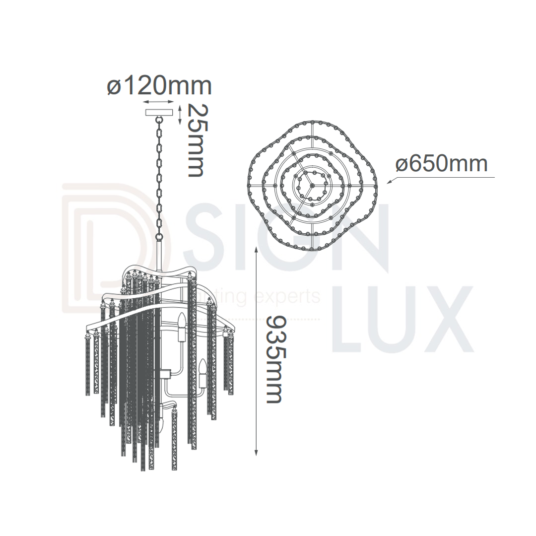 lampara colgante, decorativa, metal y cristal, acabado oro y cristal claro, 10 luces, base E12 (Foco no incluido), 90-130V, Ø650*H935mm, Cable de 3m, DESIRÉE – Q58506-GD – QUOR