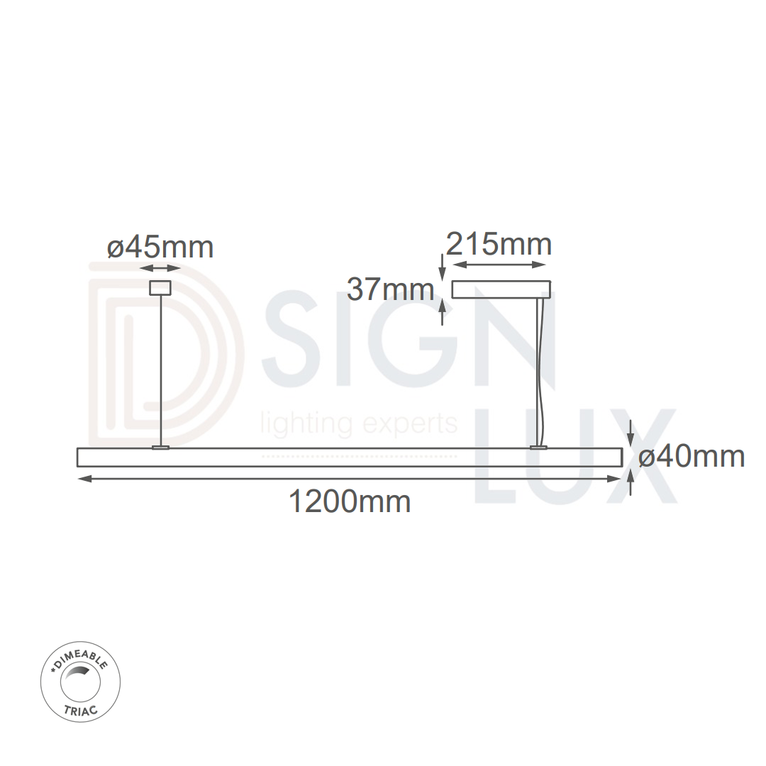 Lámpara colgante, lineal tipo cilindro en acabado negro, de aluminio y acrílico, 24W, NW 4000K, 110-240V LED Integrado, Atenuable, Cable de 3m. Sol – Q69812-BK – Quor