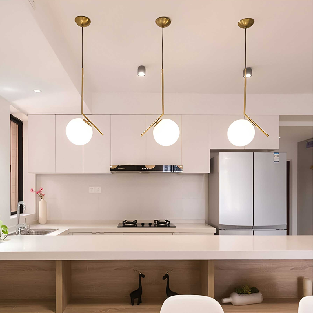 Lámpara colgante de esfera de metal con cristal opalino en acabado oro y negro con cable de 3m