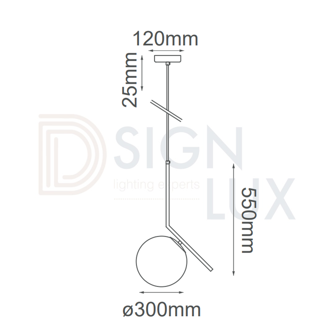 Lámpara colgante, esfera, de metal y cristal opalino, acabado negro, base E26, 60W, 90-130V, ø300*H550mm, cable de 3m, SONNE – Q31628-GD / Q31628-BK – QUOR