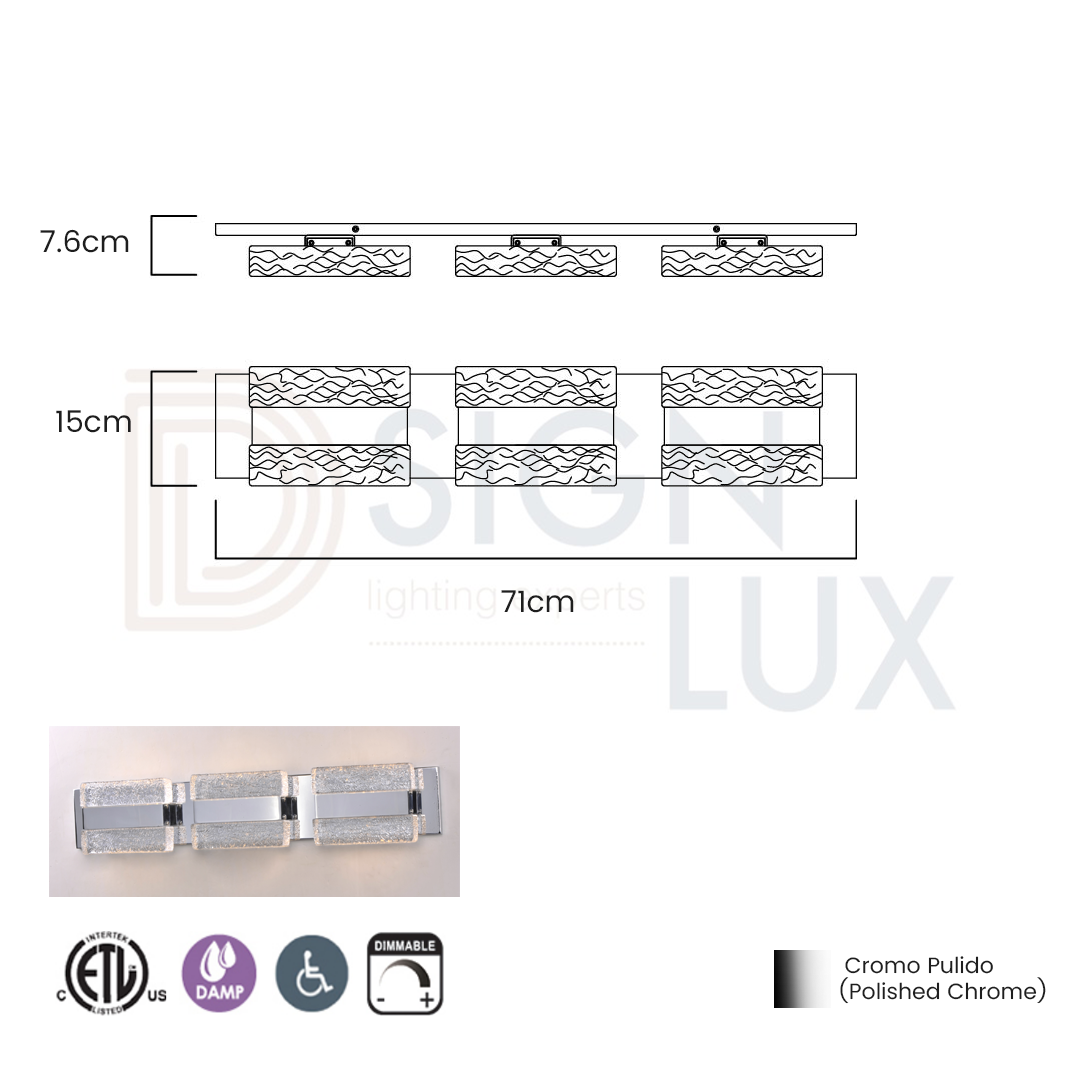 Lámpara de baño Led Cristal y Cromo Pulido 3 luces