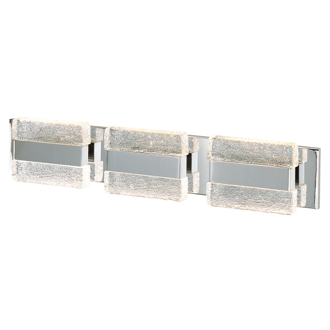 Lámpara de baño, de acero y cristal estilo iceberg, acabado cromo pulido, 6 luces LED integradas de 30W, luz blanco cálido 3000K, 1417 lm, 120V, CRI 90+, atenuable, IP44. Ice – 39623IBPC – Maxim Lighting