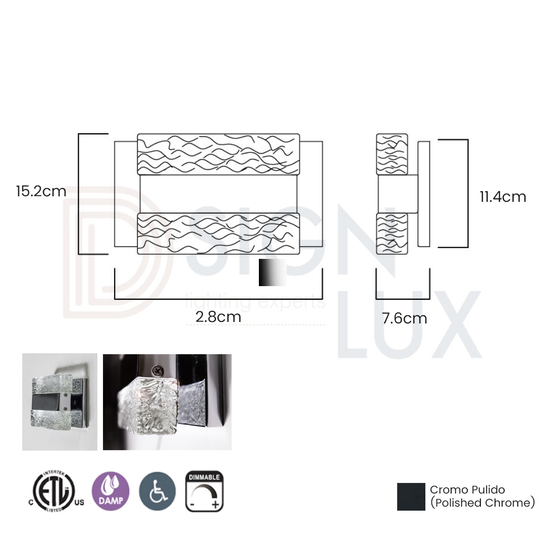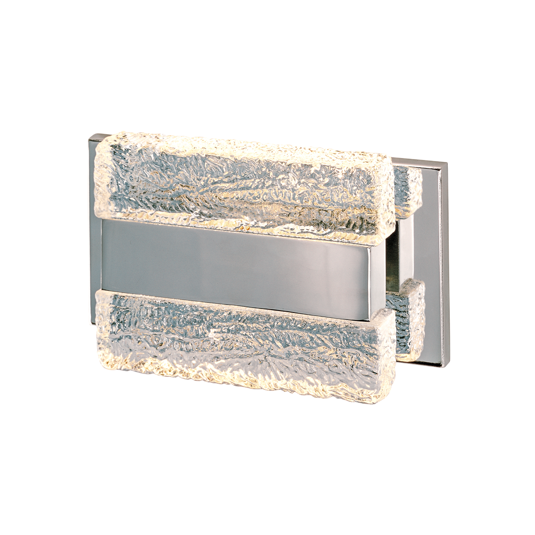Lámpara de baño LED, de cristal estilo Iceberg y acero, acabado cromo pulido, de 2 luces, LED integrado 10 W, 770 lm, 3000 K, CRI +90, Atenuable ELV, 120 V, Ice – 39621IBPC – Maxim Lighting