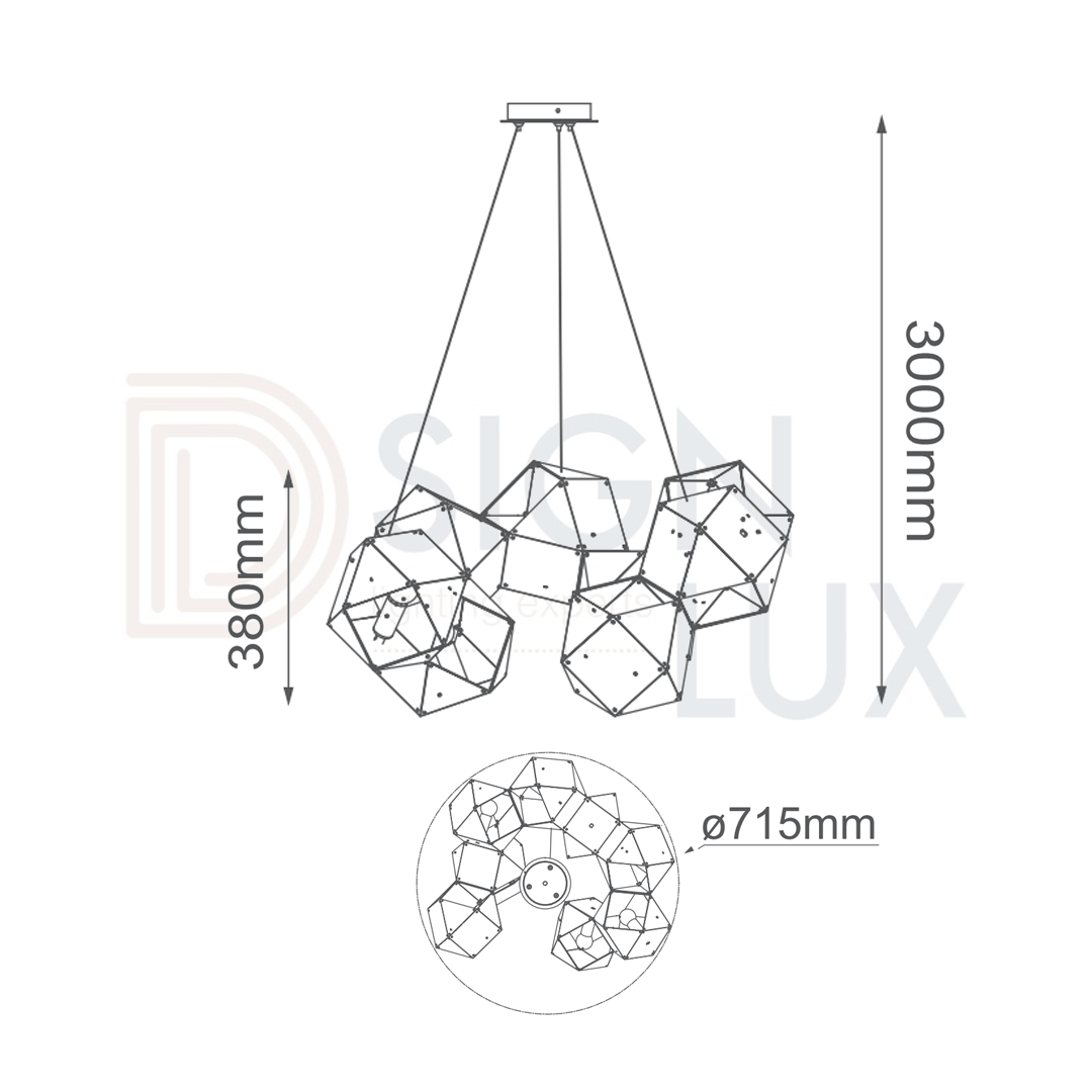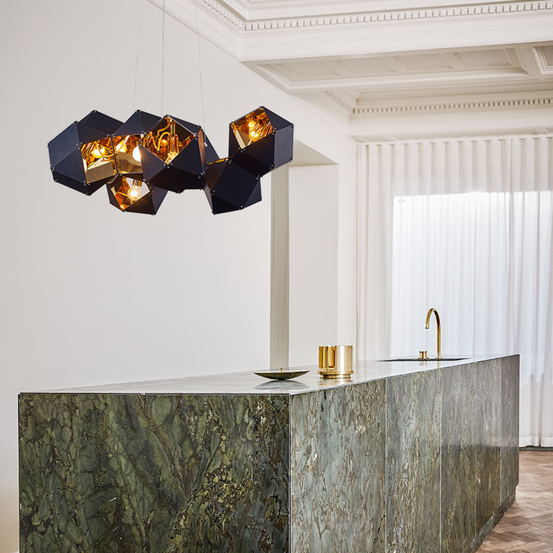 Lampara colgante, de aluminio, negro mate y oro, de 8 luces, decorativa, cubos, base E12 (focos no incluidos), 90-130V, ø715*H380mm, Cable de 3m. CUBE – Q63505-BL – Quor