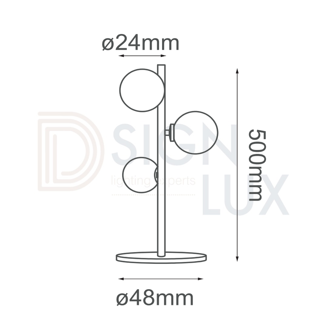 Lámpara de mesa, esferas, de metal y cristal, color oro y cristal opalino 3 luces, 4.5 watts, con base G9, 90-130v, ø48*H500mm. SONNE – Q31263-GDA – QUOR