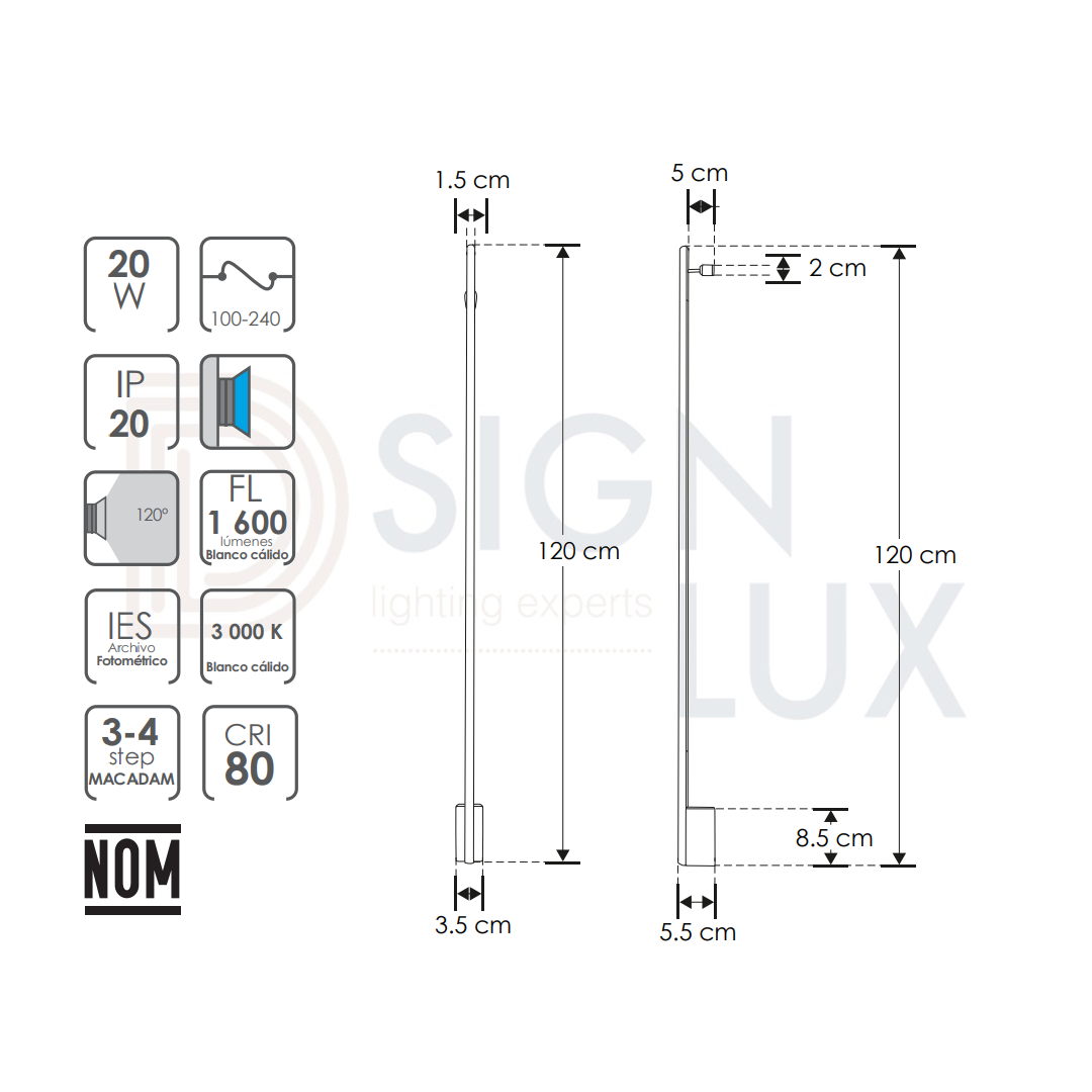 - Ángulo de iluminación: 120°
