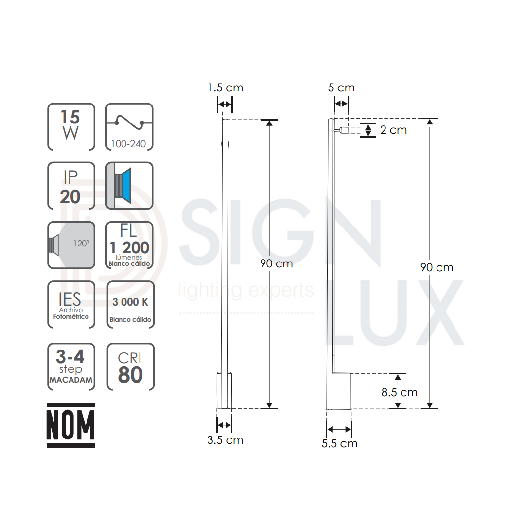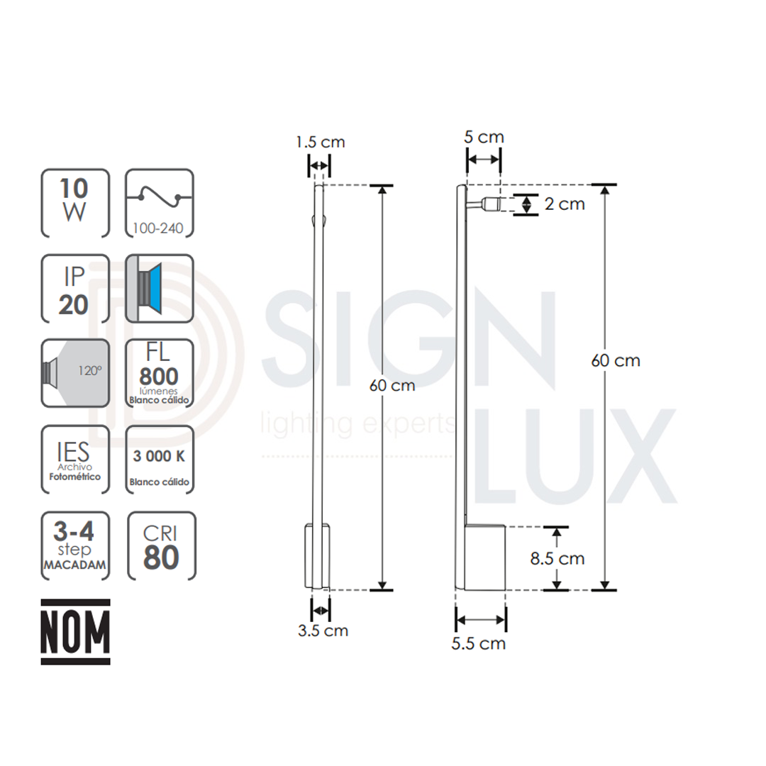 Luminario de 60,90, 120 cm de pared, de led, blanco cálido, 10, 15 y 20 Watts, óptica 120°, cilíndrico base baja, de sobreponer, aluminio acabado negro, 100-240V ca, protección IP20 ILU9081ASW60N , ILU9081ASW90N , ILU9081ASW120N – ILUMILEDS