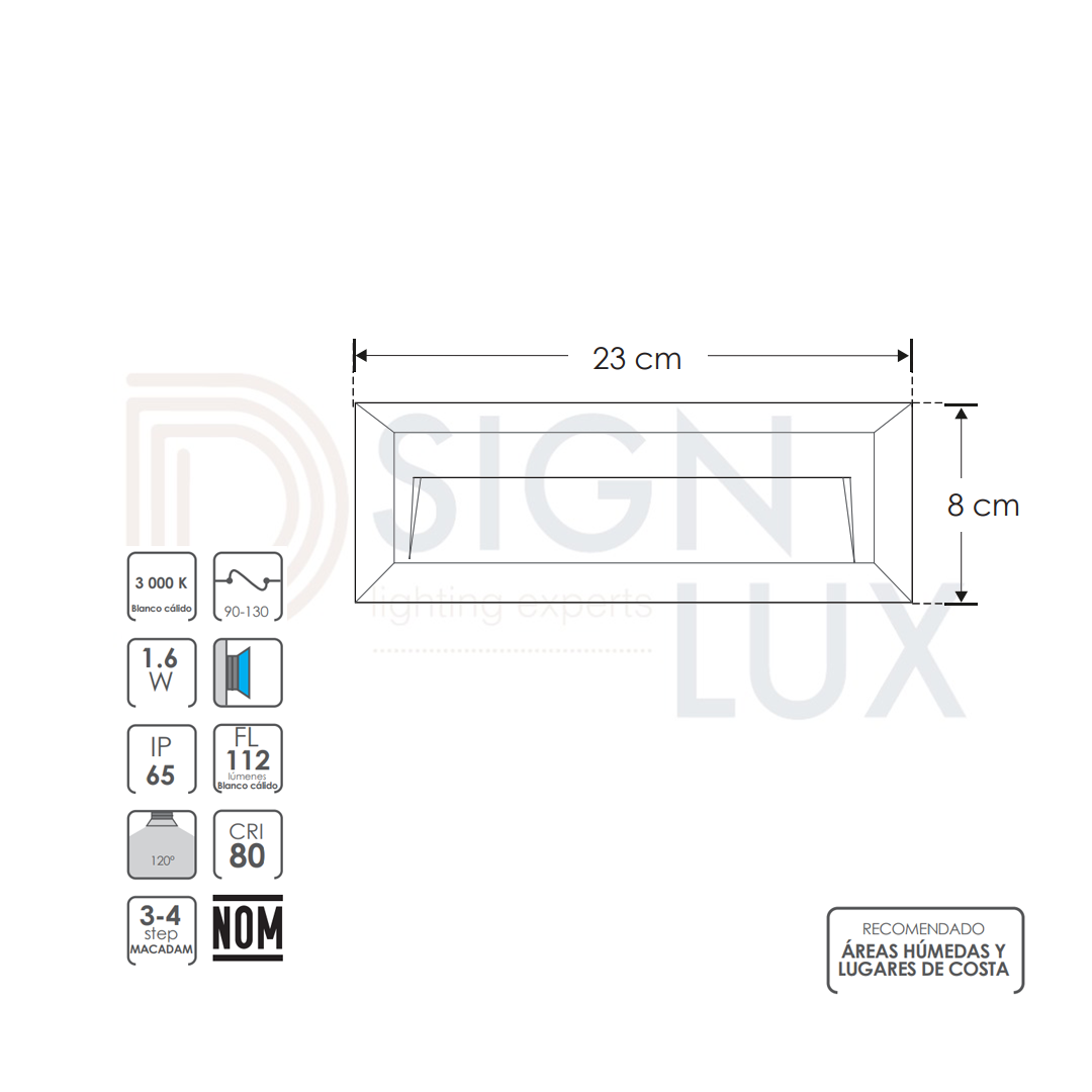 Luminario de pared, de led, blanco cálido, 1.6 Watts, óptica 120°, rectangular, de sobreponer, plástico ABS acabado gris, 90 -130V ca, protección IP65 ILUP2302G – ILUMILEDS
