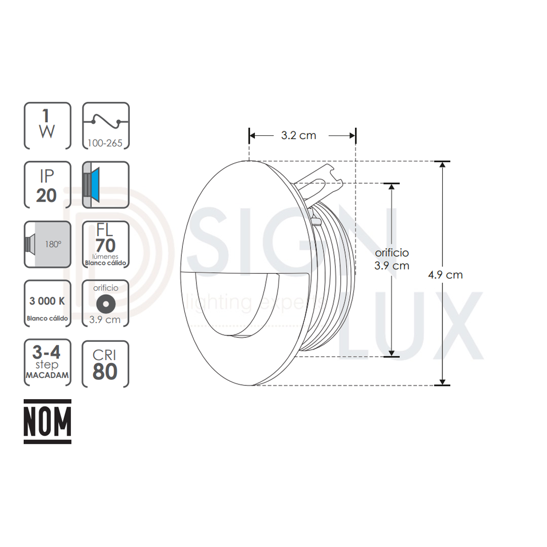 Luminario de pared, de led, blanco cálido, 1 Watt, óptica 120°, redondo, de empotrar, aluminio acabado negro, 100-265V ca, protección IP20 ILULD07252NRE – ILUMILEDS