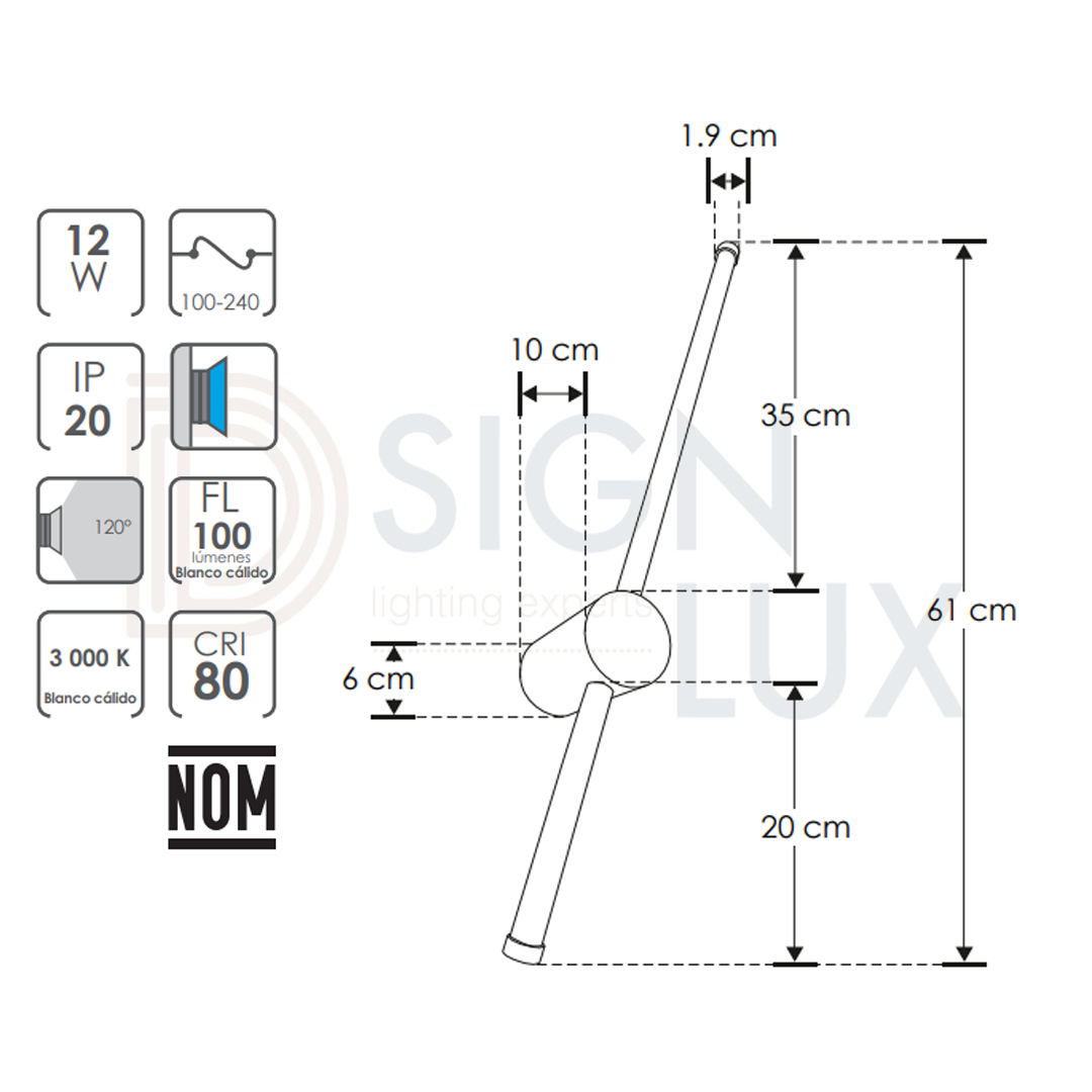 - Ángulo de iluminación: 120° (Efecto simétrico, salida de luz indirecta)