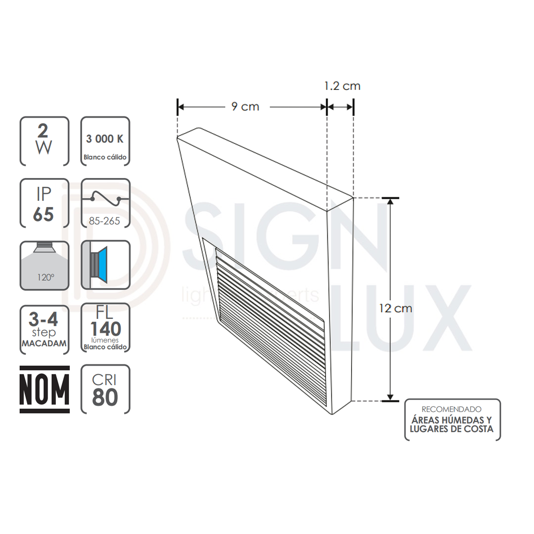 Luminario de pared, de led, blanco cálido, 2 Watts, óptica 120°, rectangular, de sobreponer, policarbonato acabado blanco y negro, 85-265V ca, protección IP65 ILU2830PC2WB – ILU2830PC2WW -ILUMILEDS