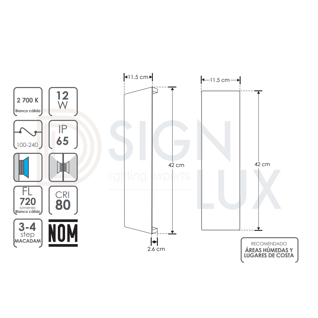 Luminario Arbotante de led blanco cálido 2700 K 12 Watts rectangular salidas de luz laterales de sobreponer aluminio acabado negro y blanco 100-240V ca protección IP65 ILULED114212WW – ILULED114212WB – ILUMILEDS