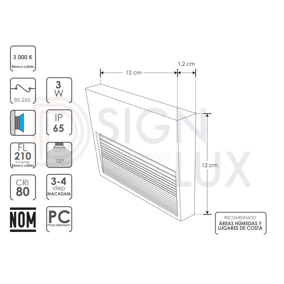 Luminario de pared, de led, blanco cálido, 3 Watts, óptica 120°, cuadrado, de sobreponer, policarbonato acabado blanco y negro, 85-265V ca, protección IP65 ILU2840PC3WB – ILUMILEDS