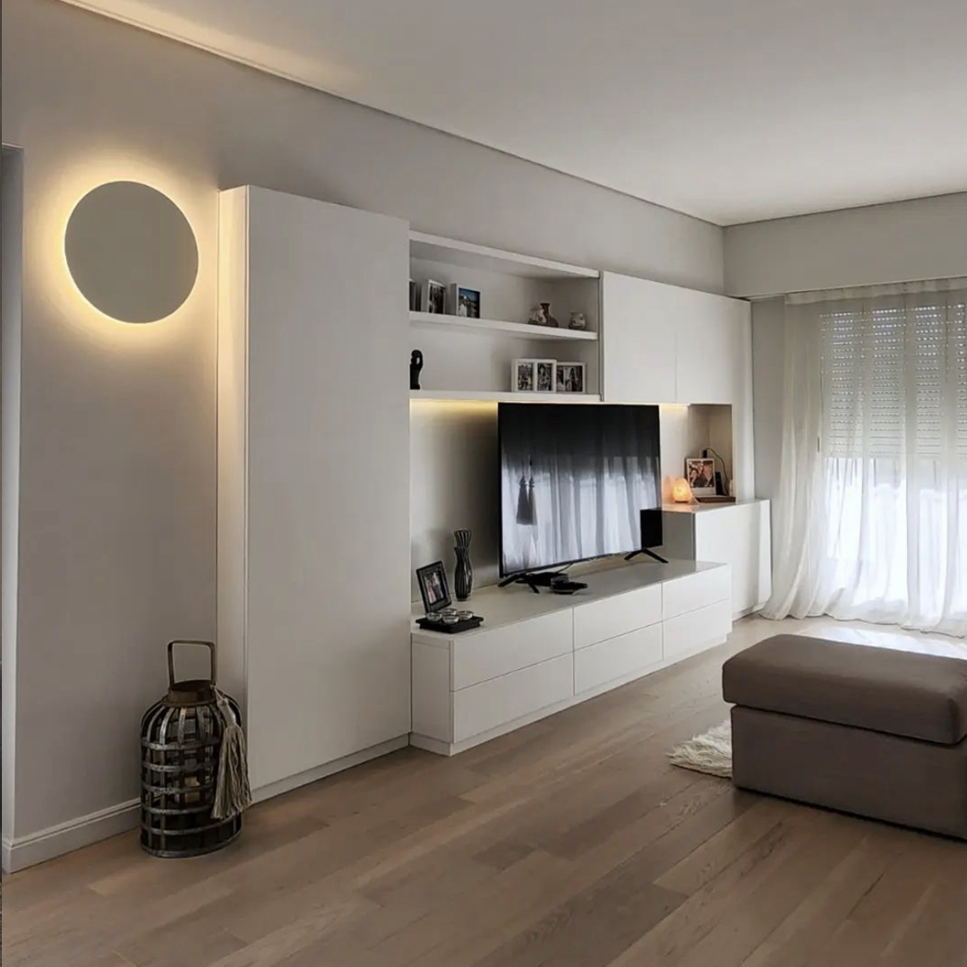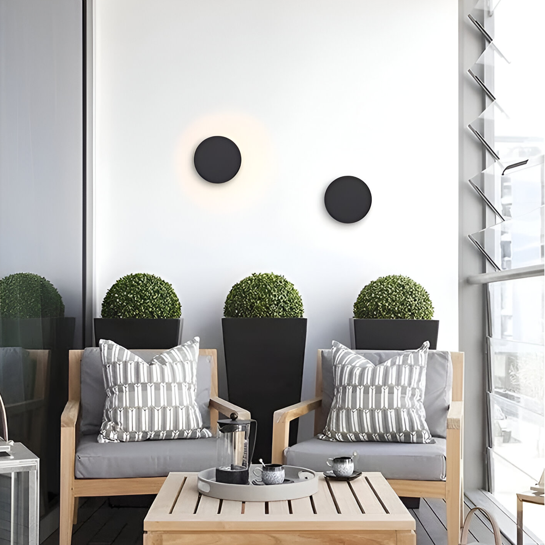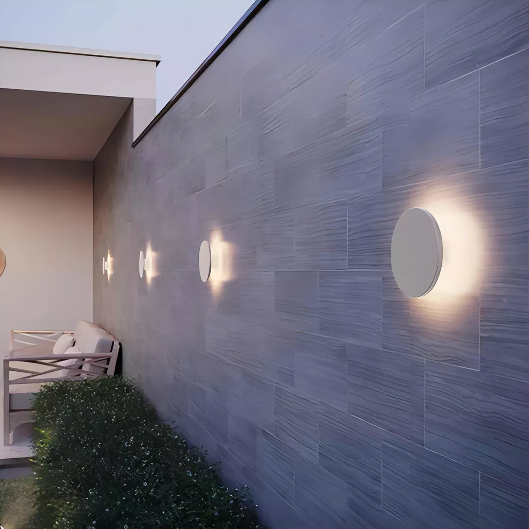 Luminario arbotante led redondo luz blanco cálido de sobreponer con salida de luz trasera. - Expertos en Iluminacion