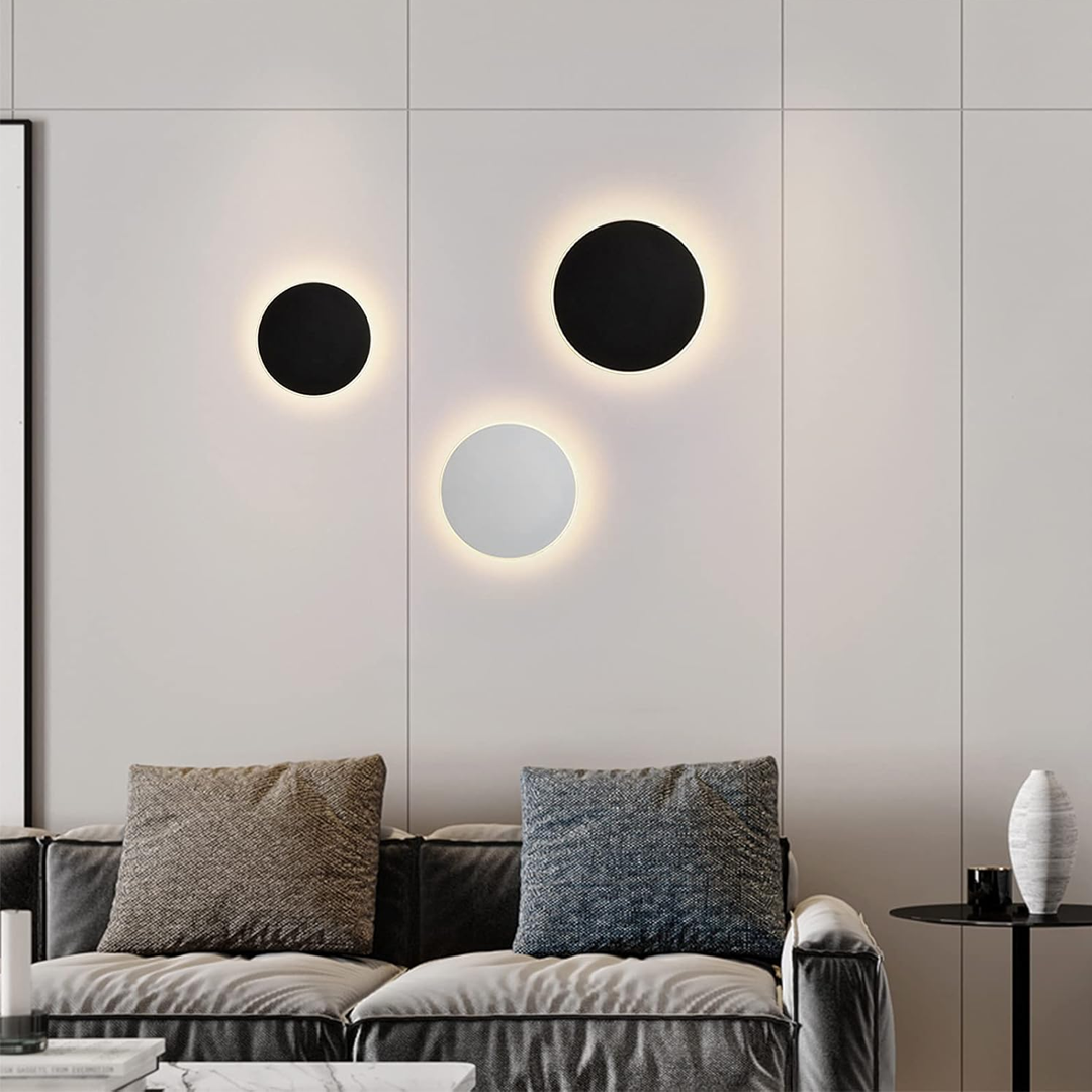 Luminario de pared, de led, blanco cálido, 12 Watts, redondo salida trasera, de sobreponer, policarbonato acabado negro / blanco, 100-240 V ca, protección IP65  ILUPC8663SSBE – ILUPC8663SSWE – ILUPC8663SBE – ILUPC8663SWE – ILUPC8663BE – ILUPC8663WE – ILUMILEDS