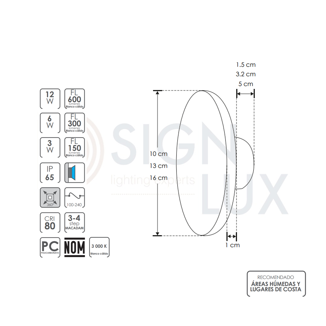 • Potencia: 3W / 6W / 12W