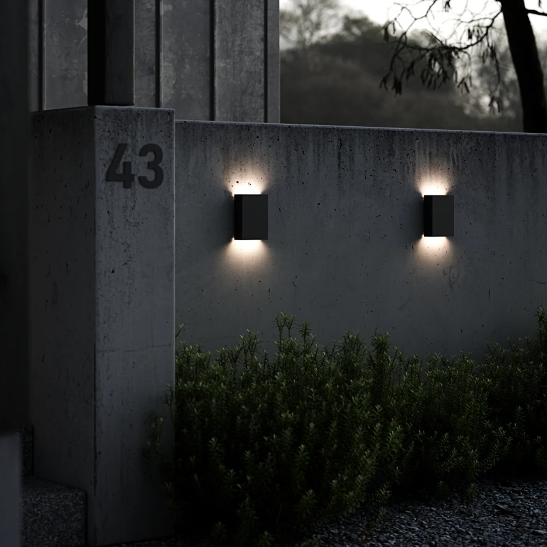 Luminario de pared, de led, blanco cálido, 4 Watts, rectangular 2 salidas de luz, de sobreponer, policarbonato acabado negro, 100–240v ca, protección IP65 ILUPC27204WBE – ILUMILEDS