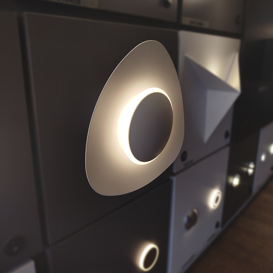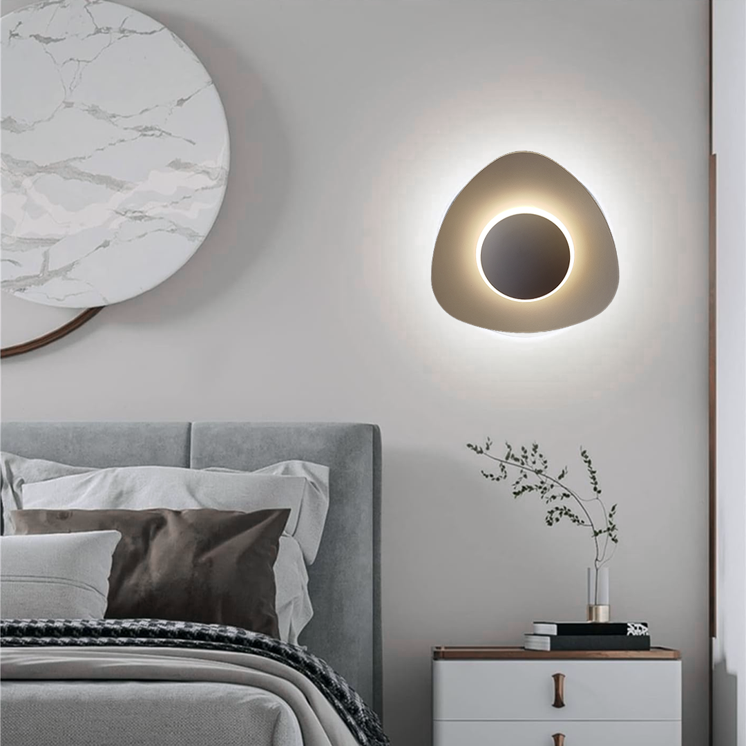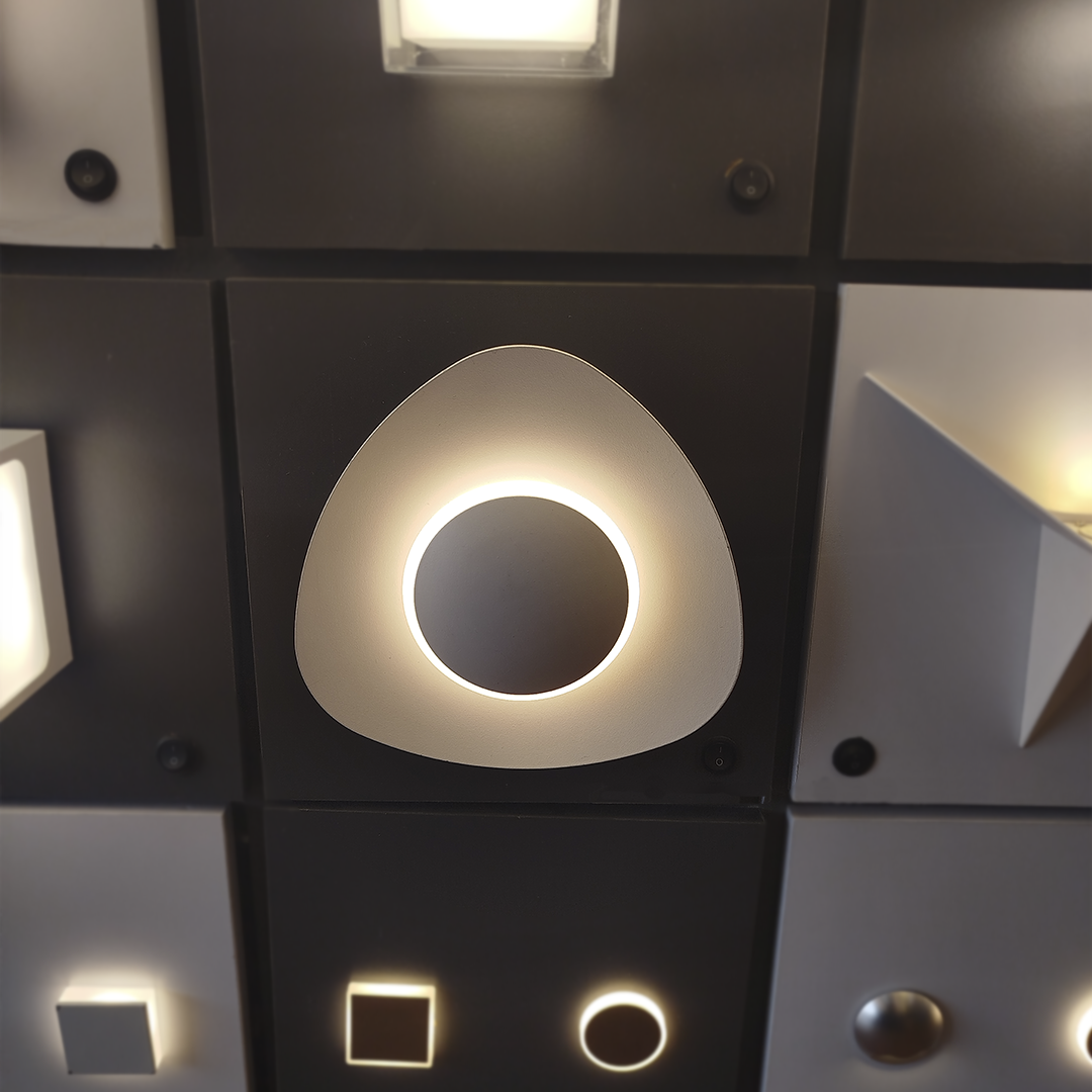 Luminario arbotante led semi-triangular luz blanco cálido de sobreponer salida de luz simétrico indirecta.