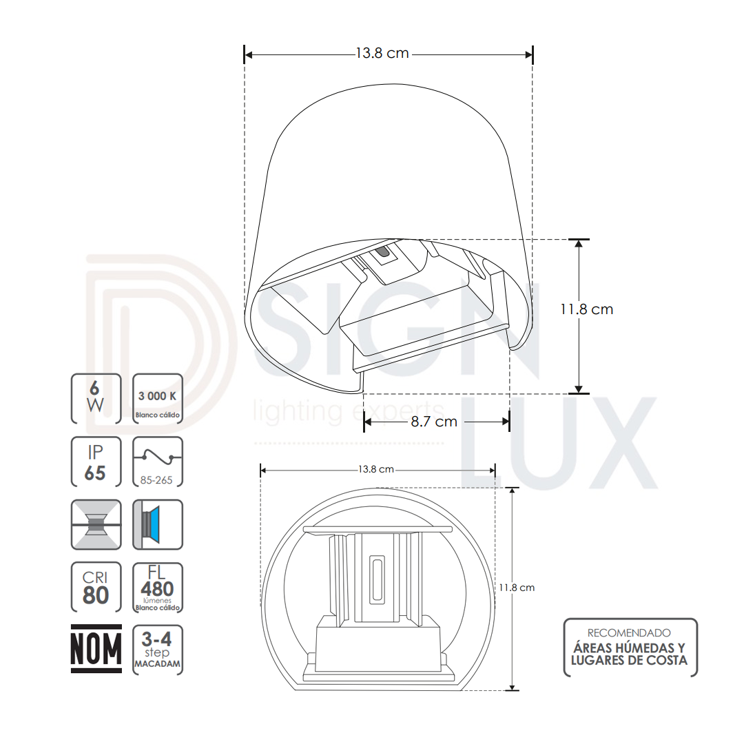 Luminario de pared, de led, blanco cálido, 6 Watts, de sobreponer, aluminio acabado negro / blanco / gris, 85-265V ca, protección IP65 LED310GABE – LED310GAGE – LED310GAWE – ILUMILEDS