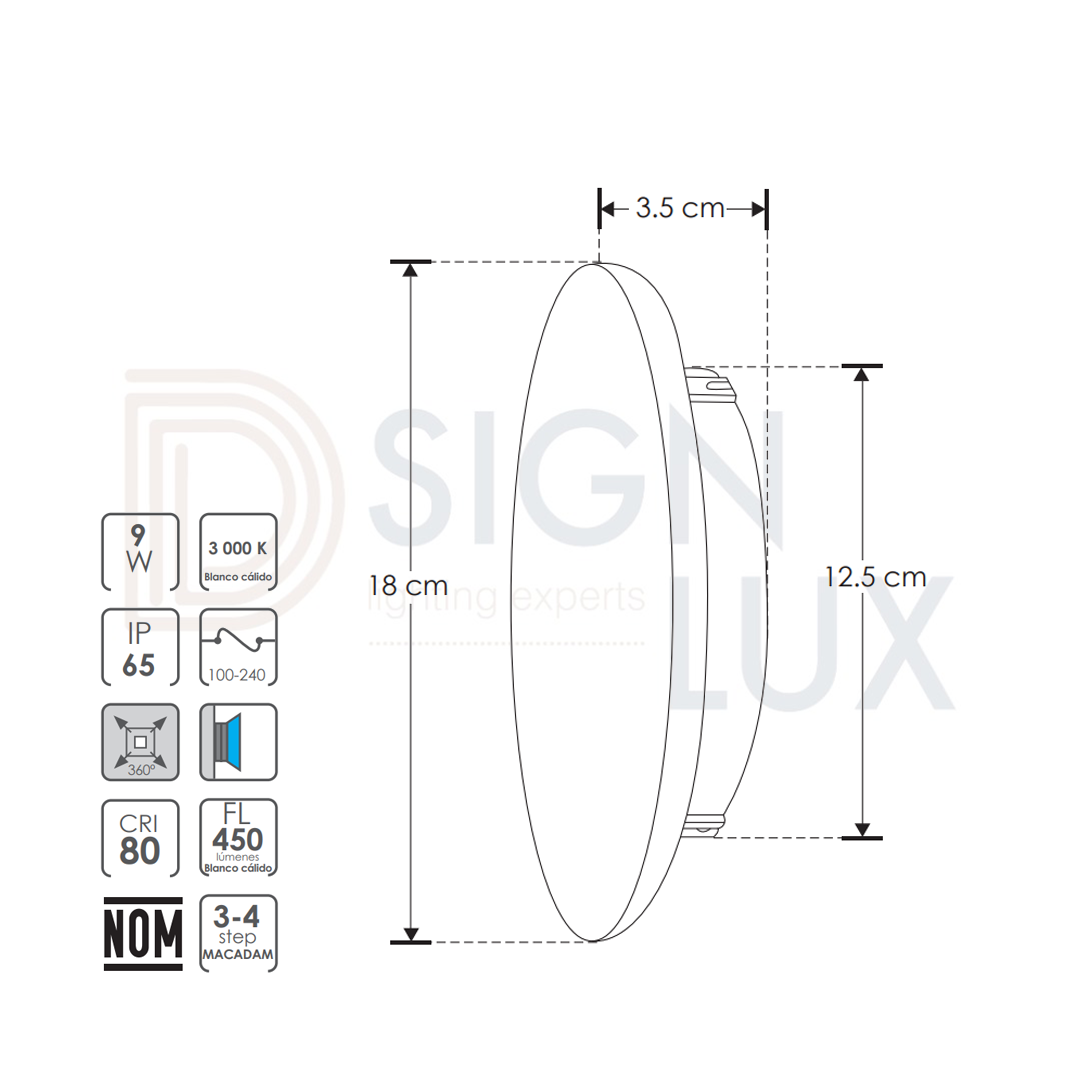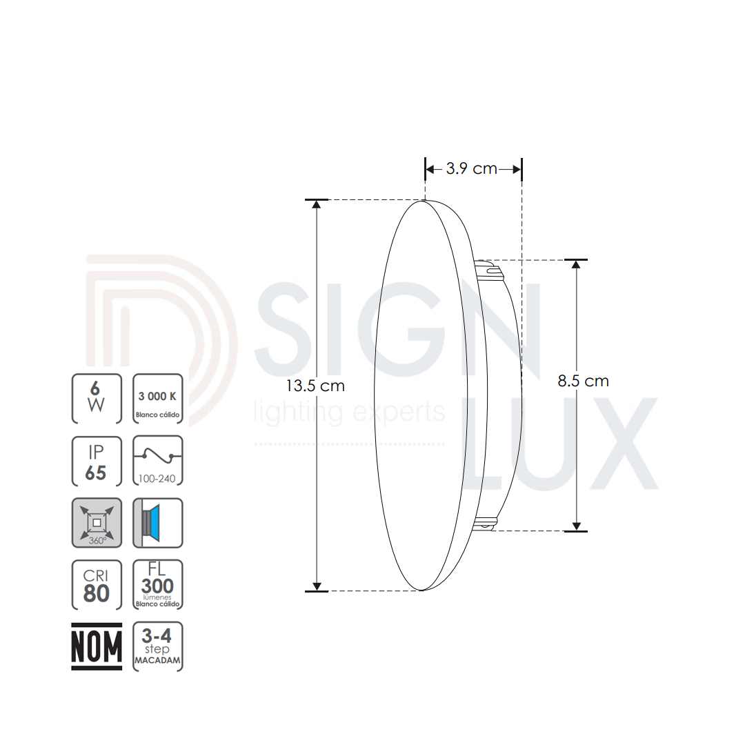 - Ángulo de iluminación: 360° (Efecto simétrico, salida de luz indirecta trasera)