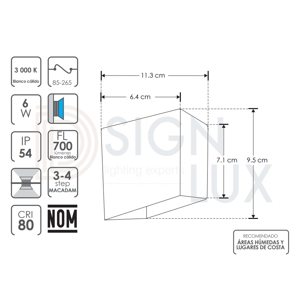 Luminario de pared, de led, blanco cálido, 6 Watts, simétrico salida de luz directa, de sobreponer, aluminio acabado negro / blanco, 85-265V ca, protección IP54, ILU50766WBIP54 – ILU50766WWIP54 – ILUMILEDS