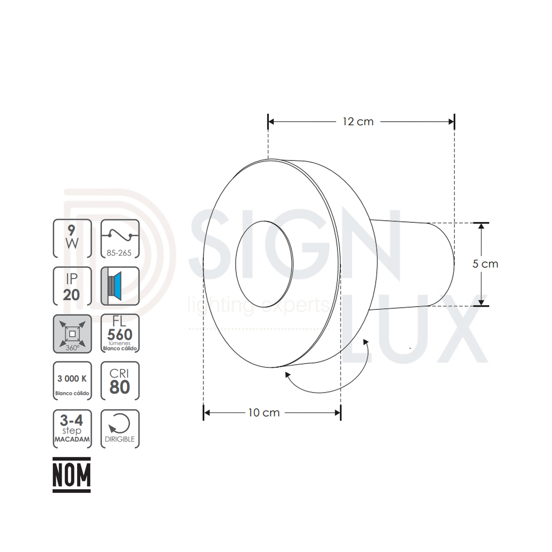 Luminario de pared, de led, blanco cálido, 9 Watts, óptica 120°, circular salida de luz directa, de sobreponer rotativo, aluminio acabado plata, 85-265V ca, protección IP20 ILUDXB60911 – ILUMILEDS