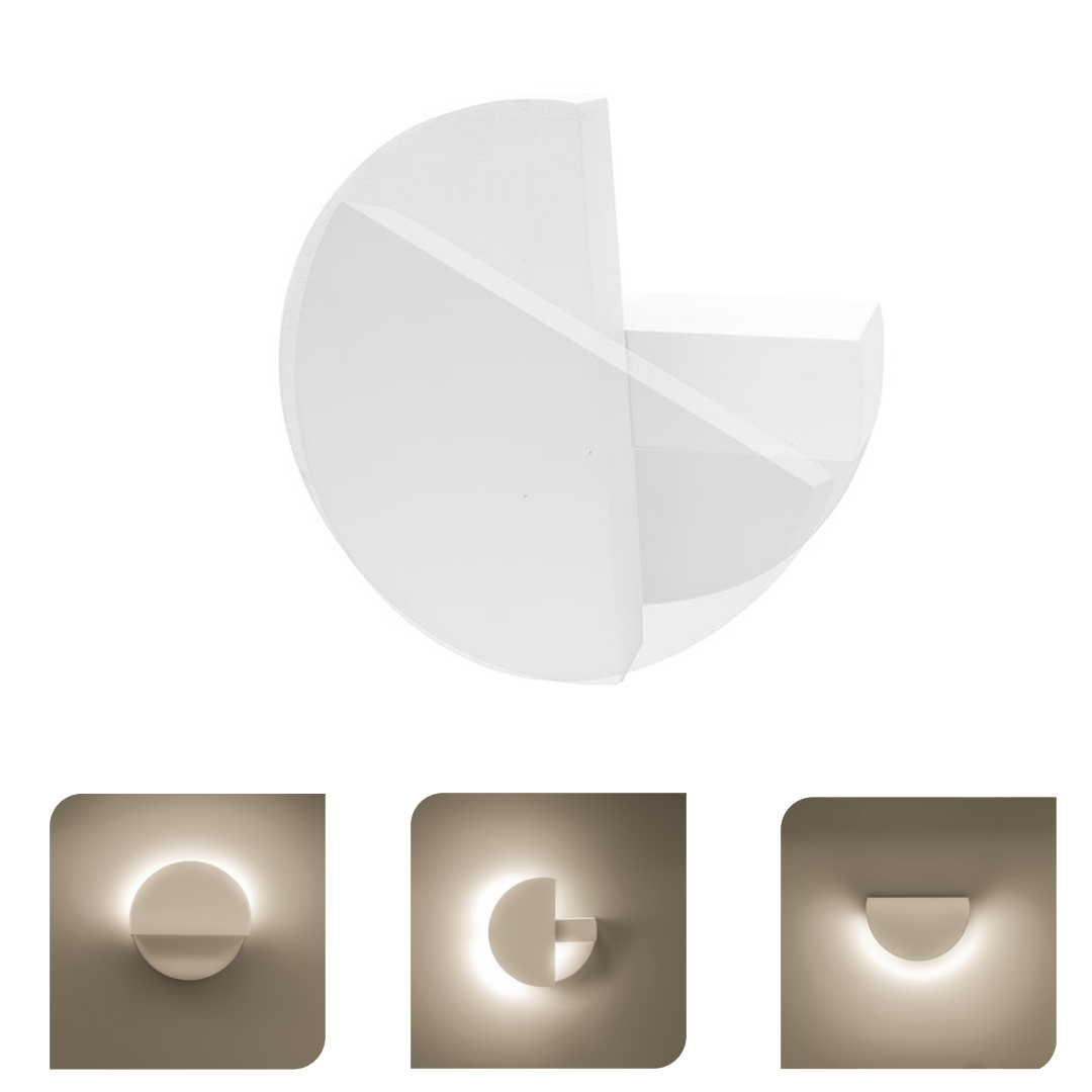 Luminario de pared, de led, blanco cálido, 9 Watts, semi circular salida de luz indirecta rotativo, de sobreponer dirigible, aluminio acabado blanco, 100-240V ca, protección IP54 LED1871MAW – ILUMILEDS
